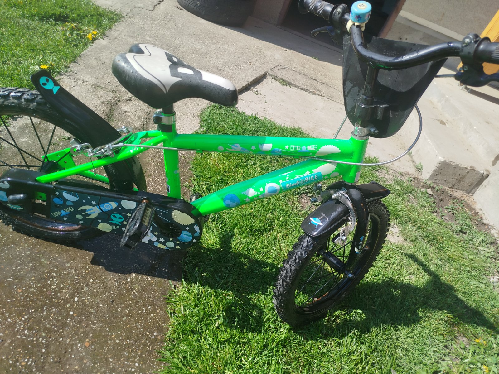 Predam pekny zeleny bicyklik v top stave, velkost 16, s pomocnymi kolieskami aj s trubou. Cena 50e