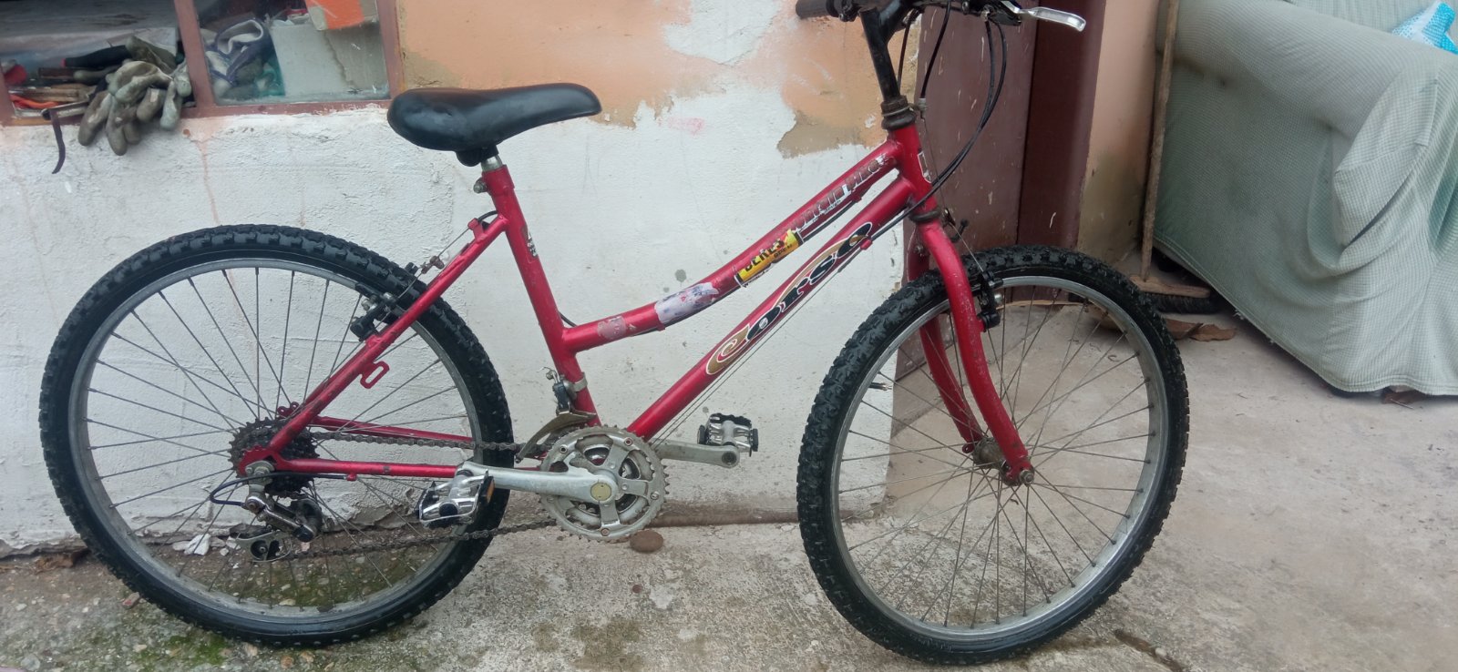Predám používaný bicykel. Prehadzovačky shimano, brzdy sú klasické. Sedadlo je trochu zatrhnuté. Je to zohľadnené v cene. Bicykel je funkčný ale nálepky sú už trochu poškriabané.