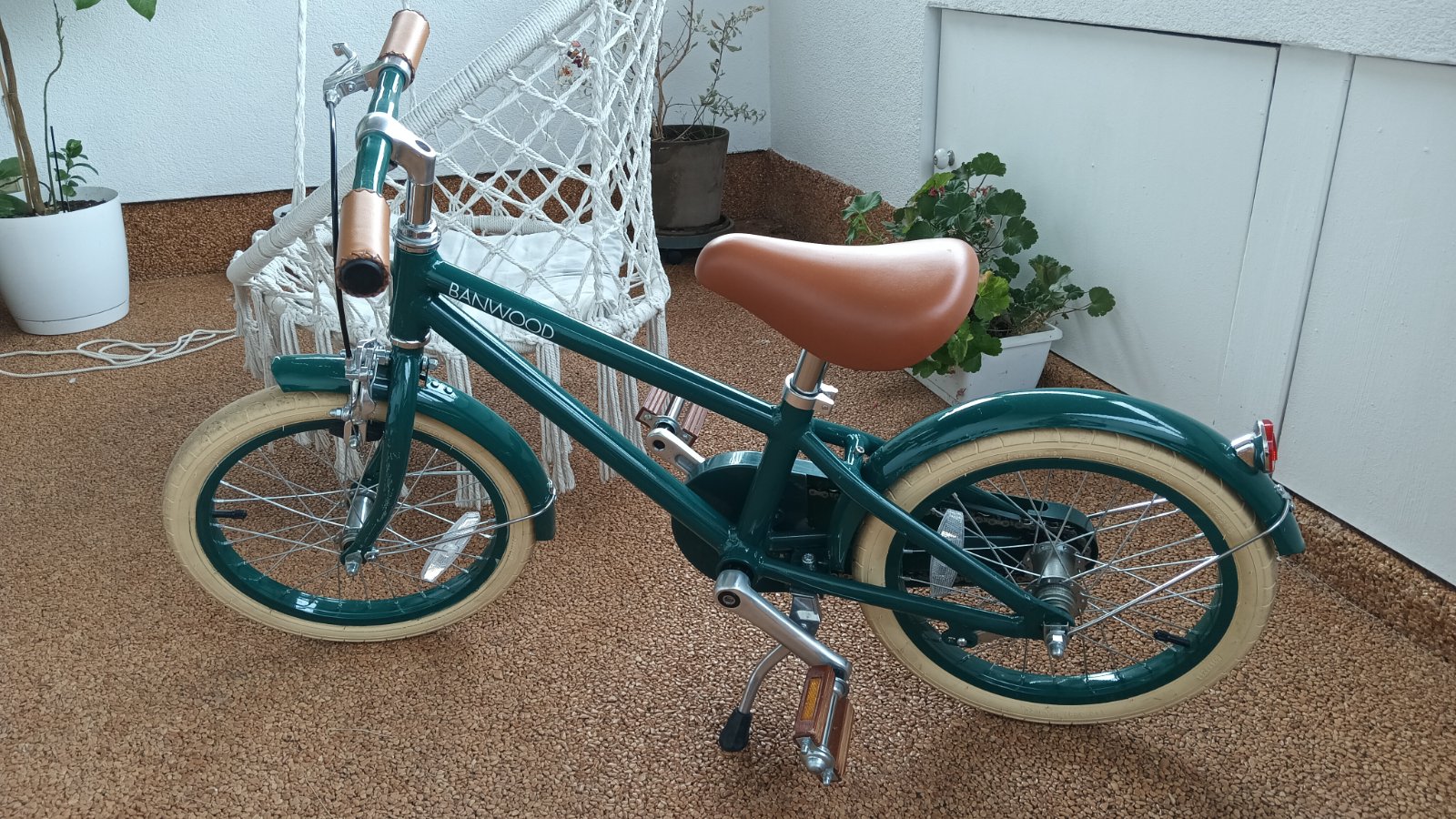 Popis: Detský vintage bicykel s nadčasovým škandinávskym vzhľadom a jedinečnými pedálmi z palisandrového dreva. Má ľahký tmavozelený zliatinový rám a krémové 16" kolesá. Sedlo a riadidlá sú výškovo nastaviteľné, čo ponecháva priestor na rast spolu s vaším dieťaťom. Tento detský retro bicykel je vybavený bezpečnostným zvončekom, zadnou pedálovou brzdou, ručnou brzdou a odnímateľnými balančnými kolieskami. Sedlo a rukoväte sú vyrobené z vegánskej kože.