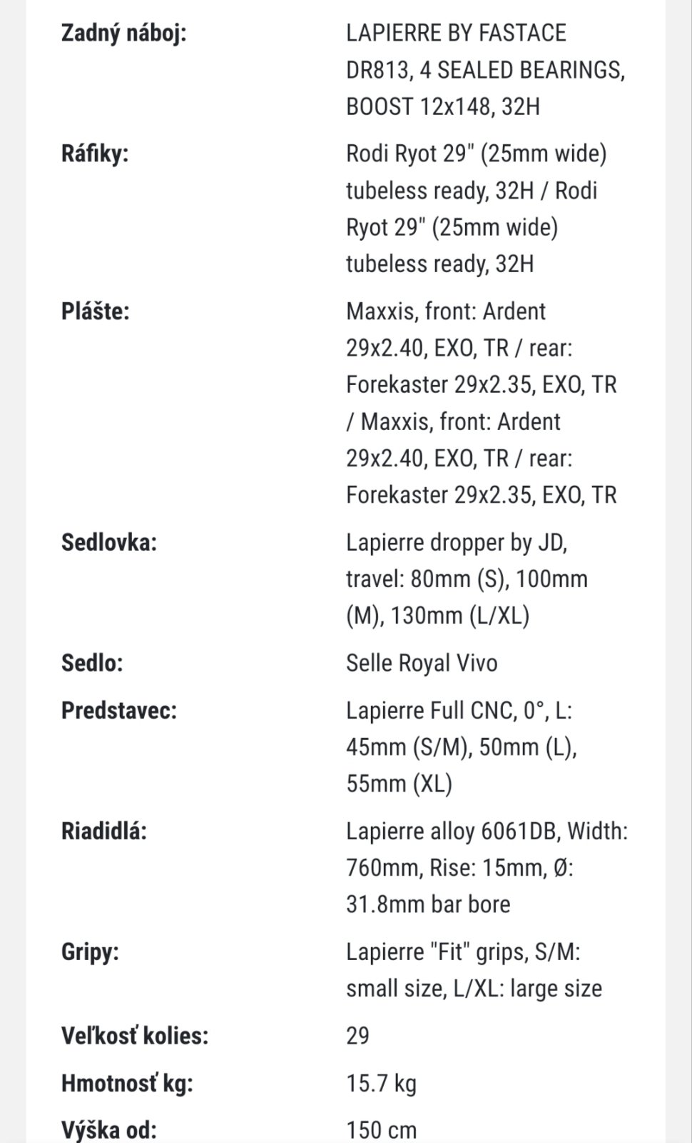 Veľkosť rámu S kolesá 29