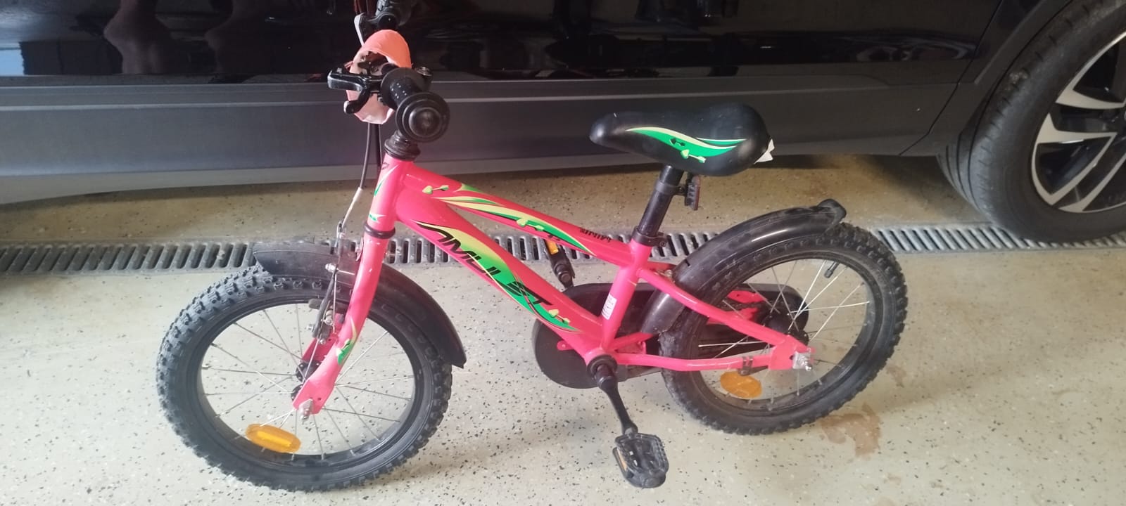 Farba taká neonova.. používaný jedným dieťaťom ale už vidno používanie, stále plne funkčný