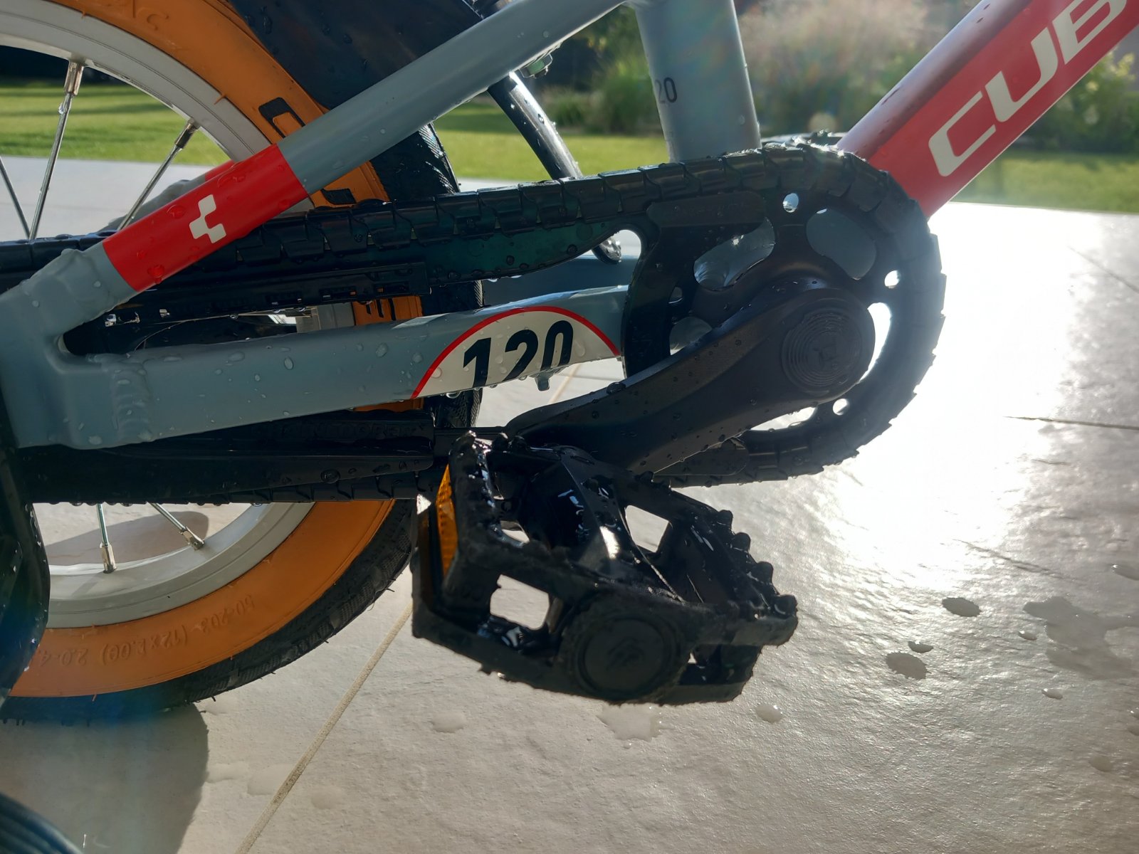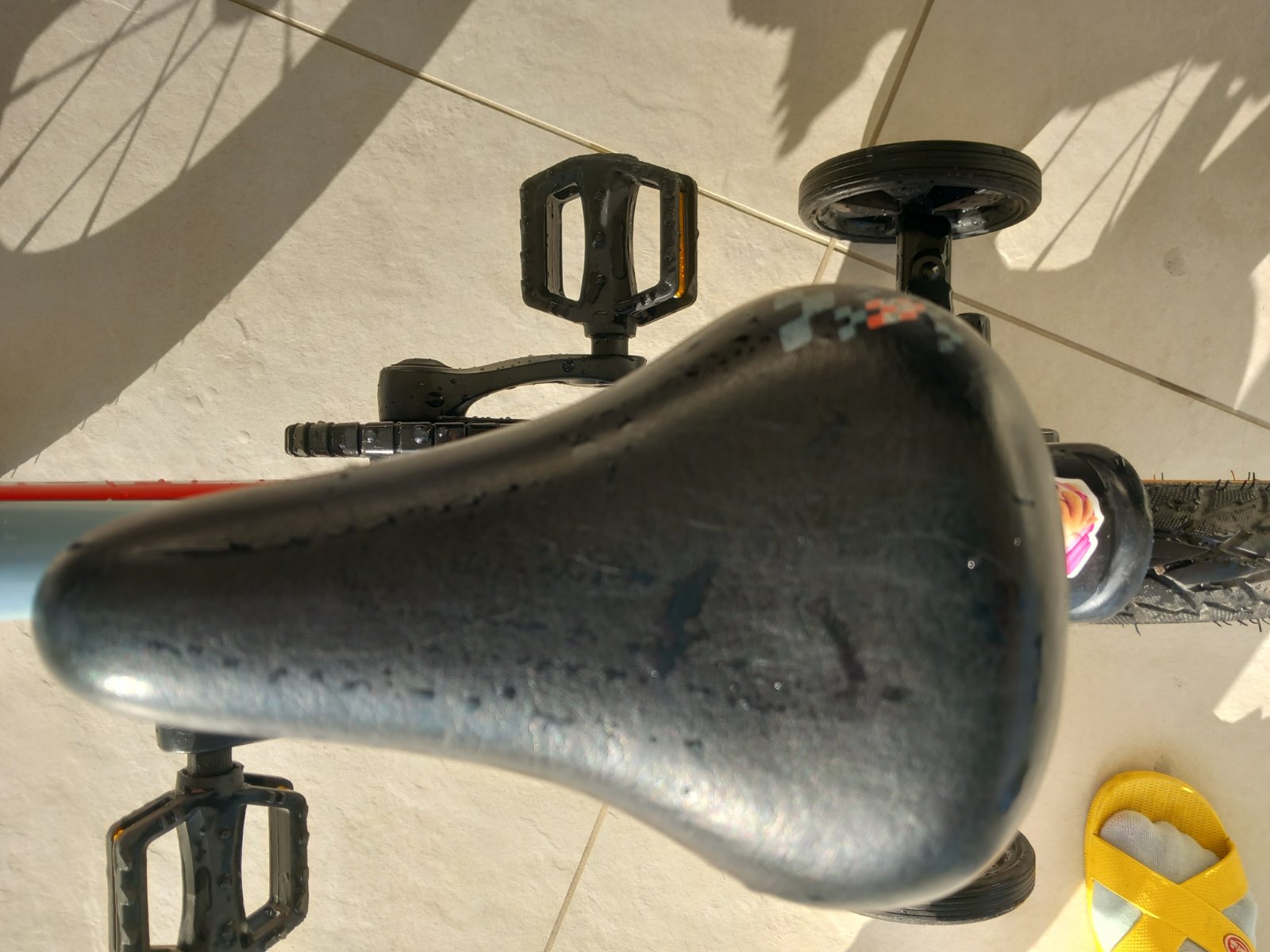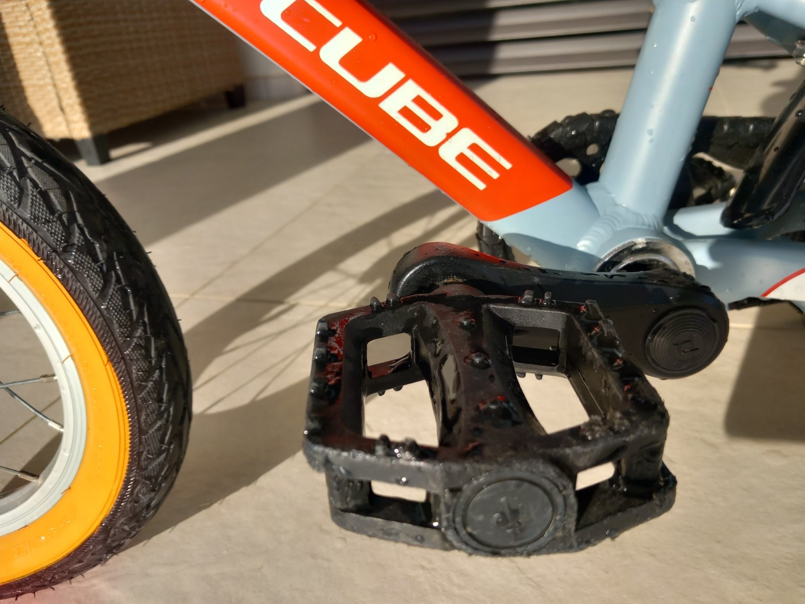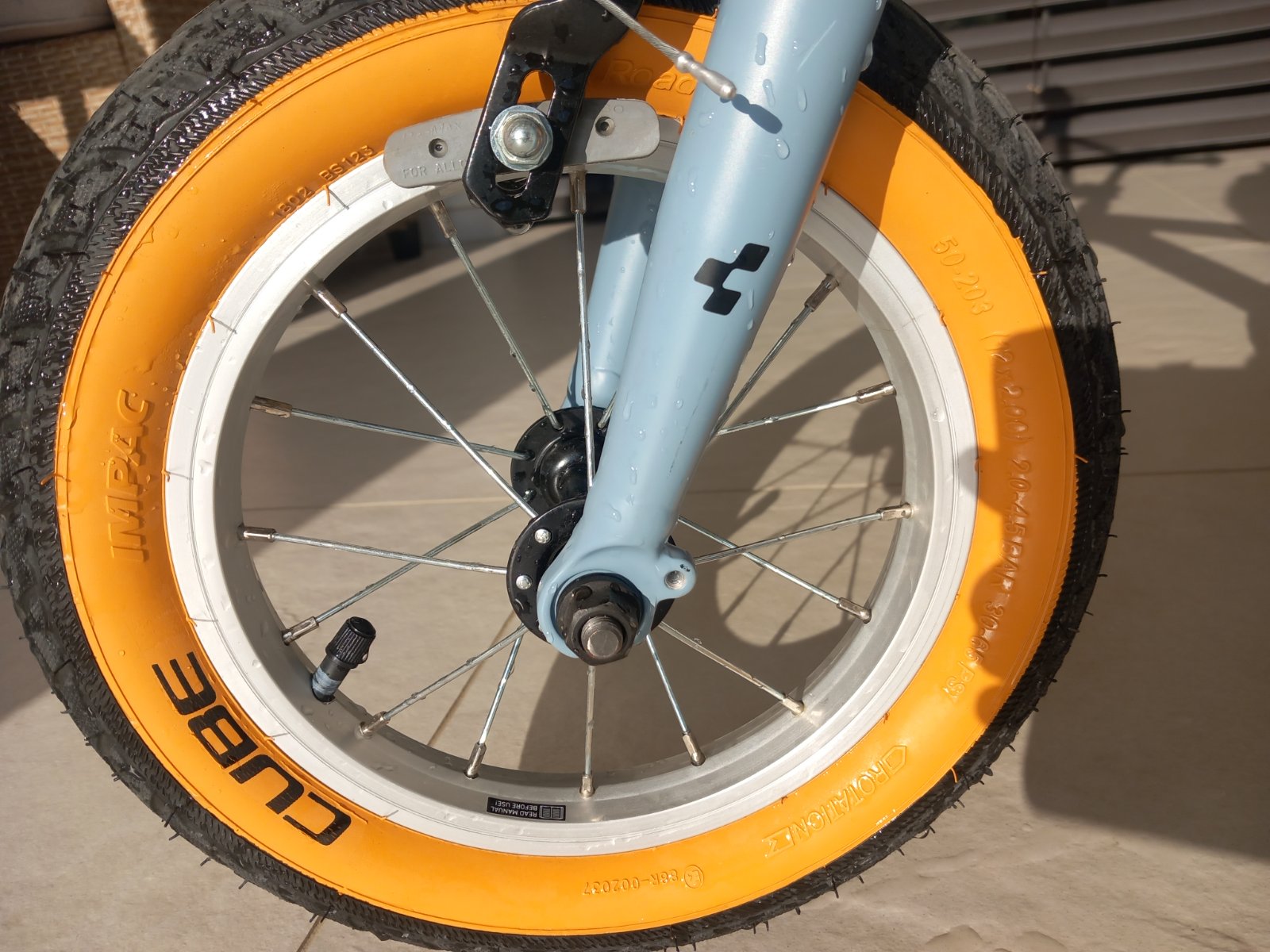 Predám hliníkový bicykel v perfektnom stave zn. Cube. Bez poškodení. Rám nemá žiadne poškodenia ani škrábance. Technicky stav perfektný. Bol málo jazdený. Minimálne šuchnutie je na väčších riadidlách, zvončeku a pedáloch. Menšie riadidlá sú nové. K bicyklu sú aj pomocné kolieska. Hmotnosť 5,9kg.