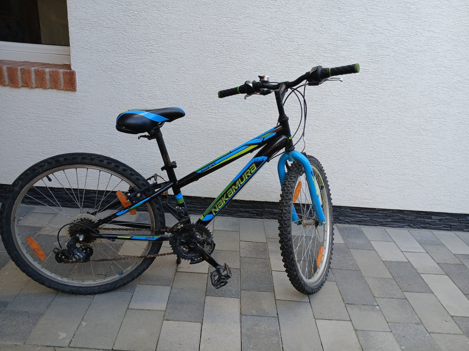Predám používaný bicykel. Prehadzovačky shimano, brzdy sú klasické. Sedadlo je trochu zatrhnuté. Je to zohľadnené v cene. Bicykel je funkčný ale nálepky sú už trochu poškriabané.