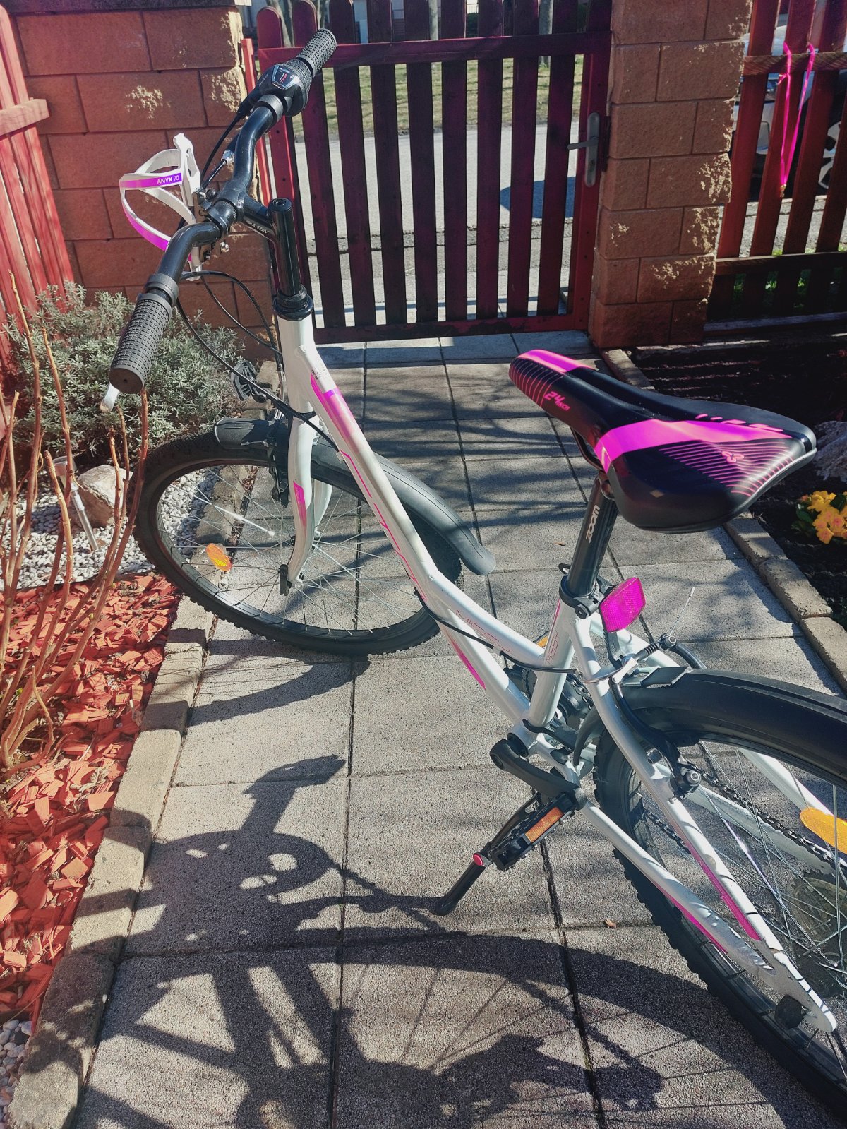 Kvalitný dievčenský bicykel, výborný stav, nepoškodený, minimálne používaný, dokúpený zvonček. Veľkosť kolies: 24 palcov (vhodné pre deti s výškou cca 125 – 145 cm, vek približne 8-11 rokov). Prevo...