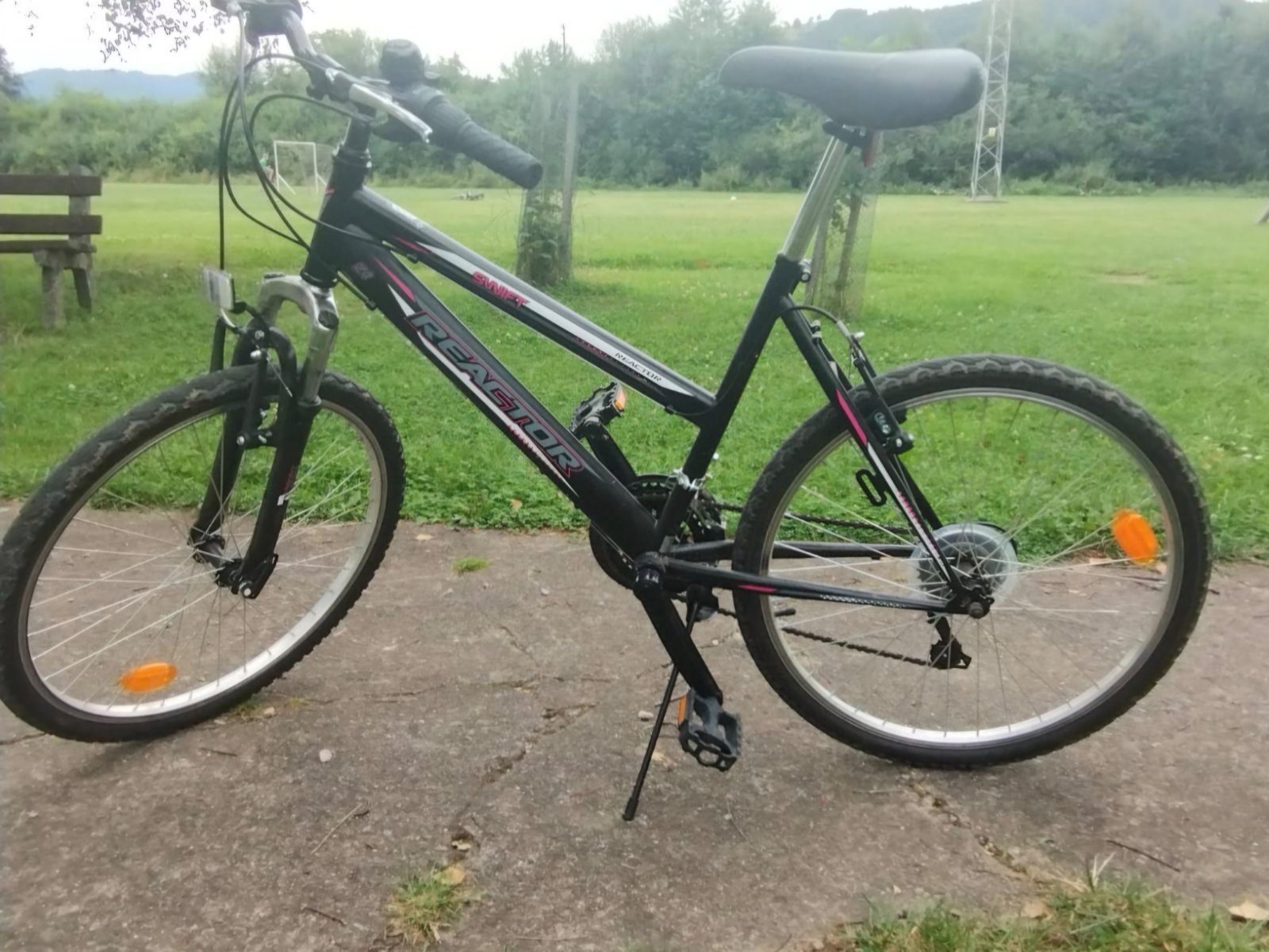 Predám používaný bicykel. Prehadzovačky shimano, brzdy sú klasické. Sedadlo je trochu zatrhnuté. Je to zohľadnené v cene. Bicykel je funkčný ale nálepky sú už trochu poškriabané.