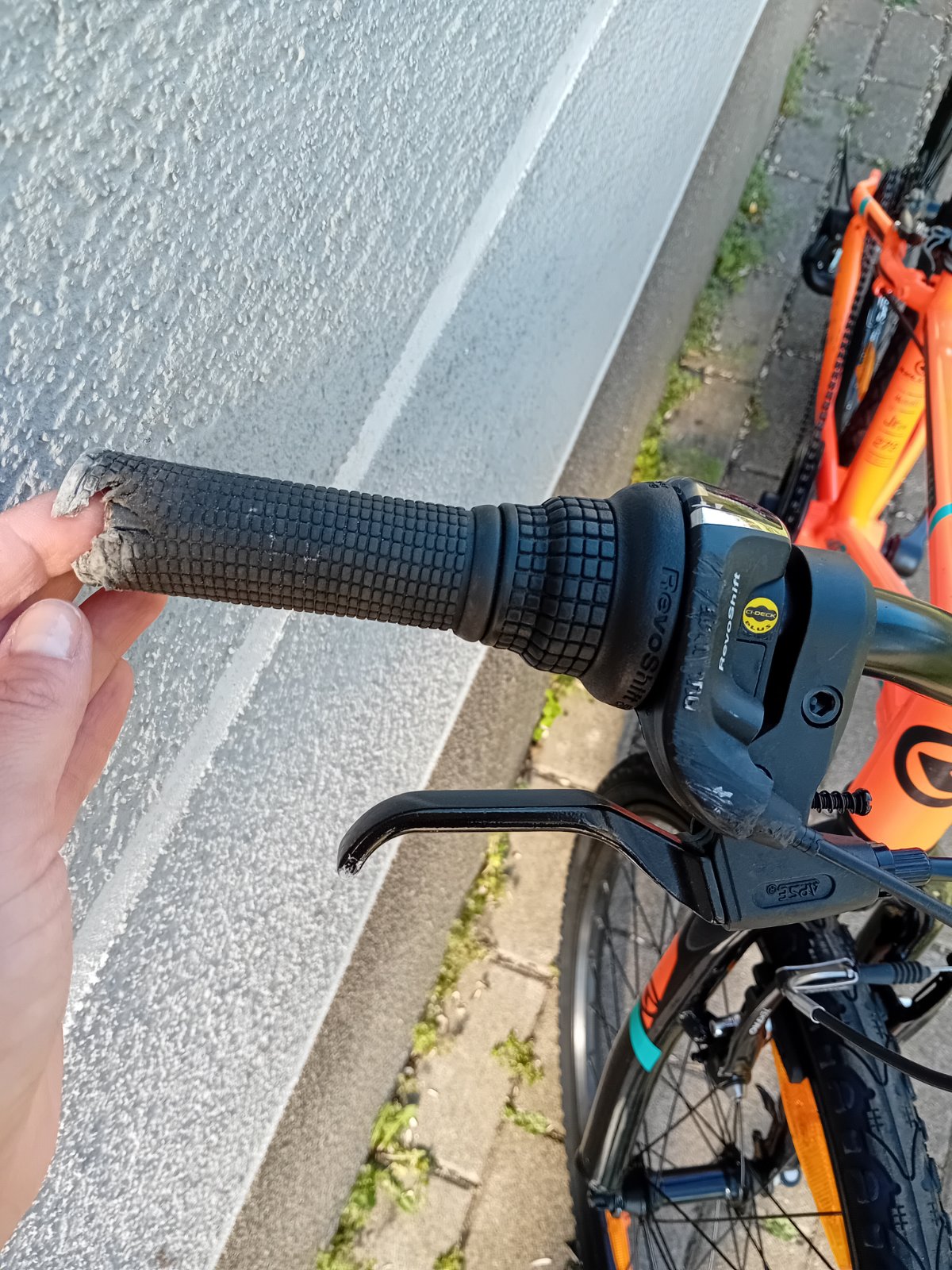 Jediné chybičky sú na riadidlách-po nevydarenom páde-odretá prehadzovačka a poškodený grip(všetko zachytené na foto).