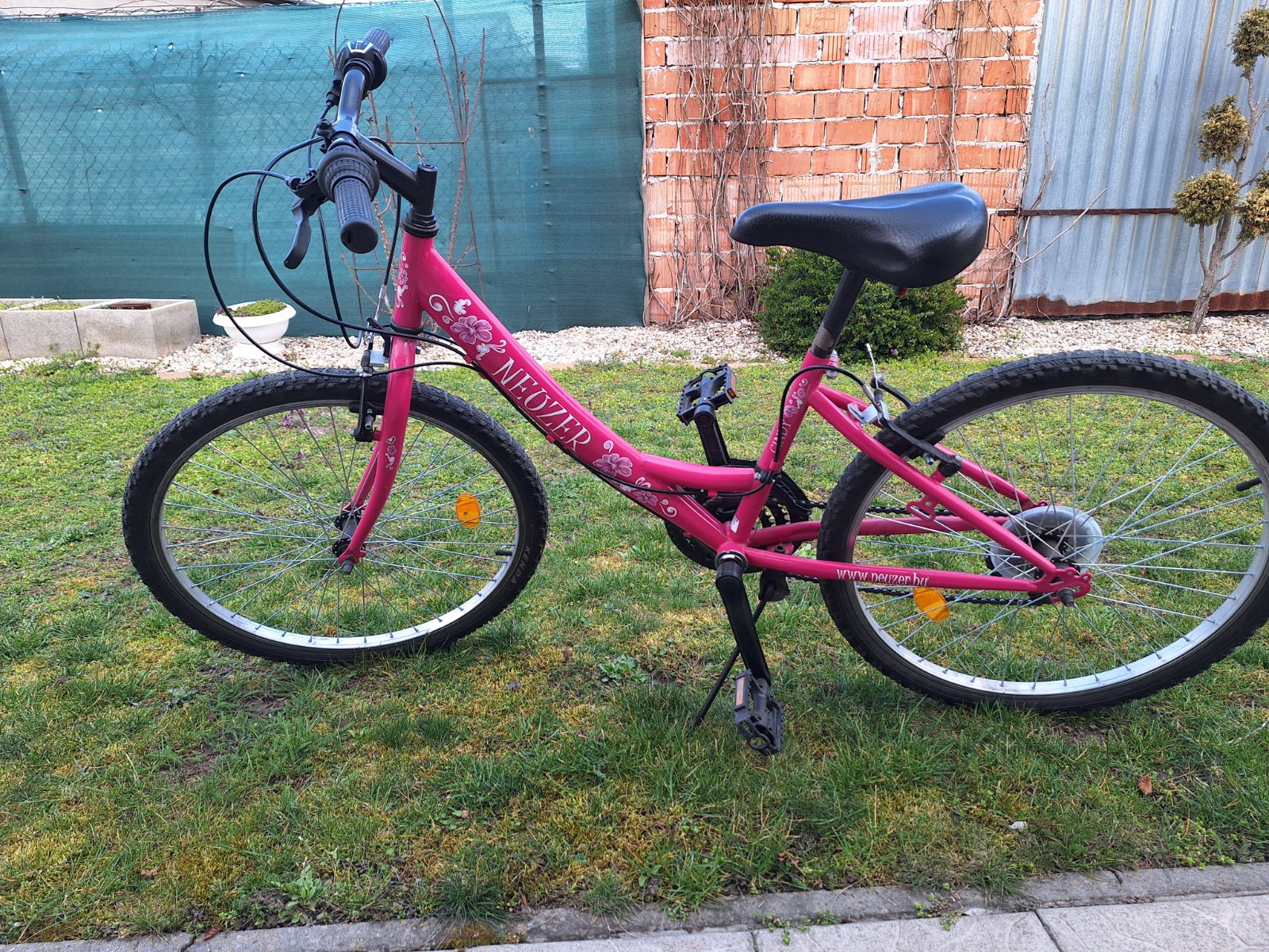 Dievčenský bicykel, podľa mňa 24, do 12 rokov. Zachovalý stav, už nám 1 rok stojí v pivnici, všimla som si, že začína chytať chytať koroziu na riaditkach. Treba ho vyčistiť. Má i košík v predu. Kúp...