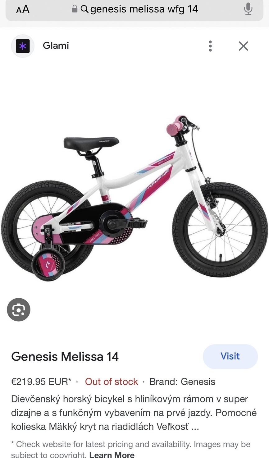 Predám dievčenský bicykel používaný jeden rok pridám pomocné kolieska bez poškodenia keď treba pošlem viac foto