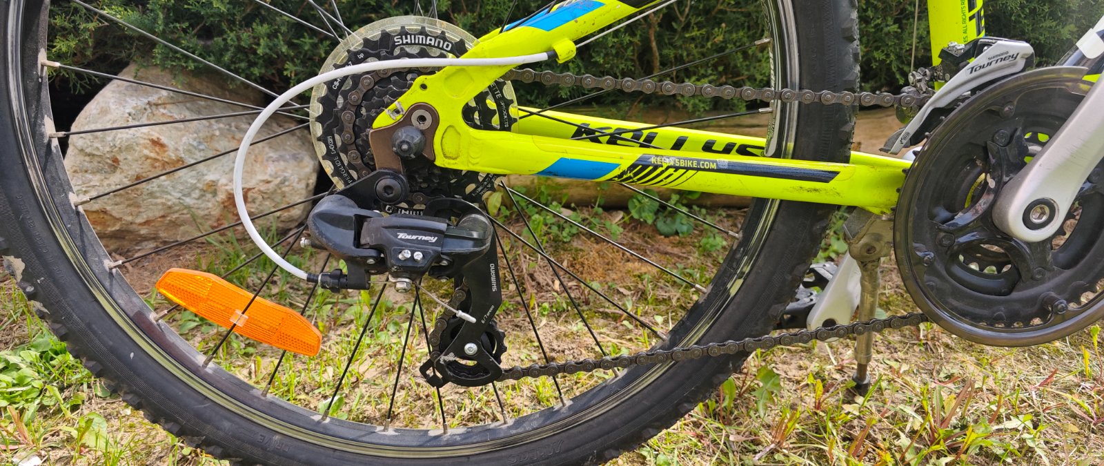 Bicykel značky Kellys kitter 30, veľkosť 24, V-brake brzdy, Shimano prehadzovac, stojan na fľašu. Cena 95€.