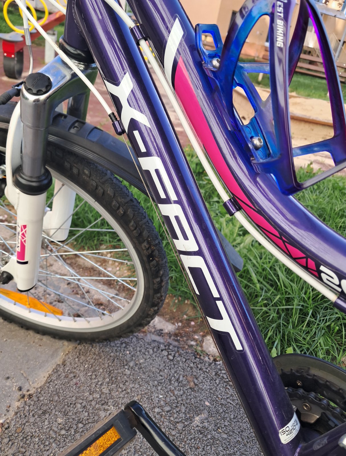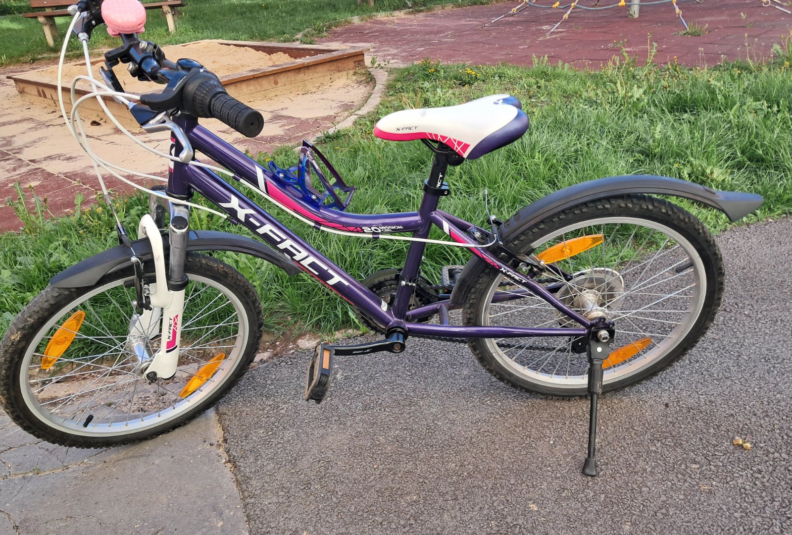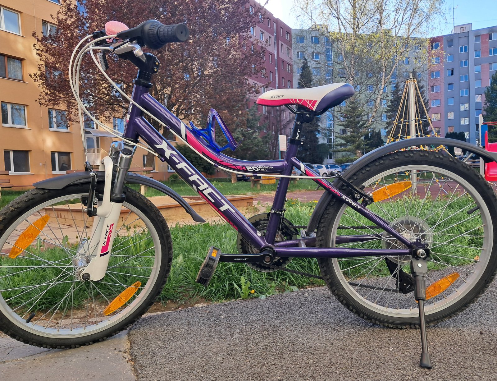 Bicykel bol používaný 2 roky. Je vo veľmi dobrom stave, v cene bicykla je aj zvonček, stojan a stojan na vodu.