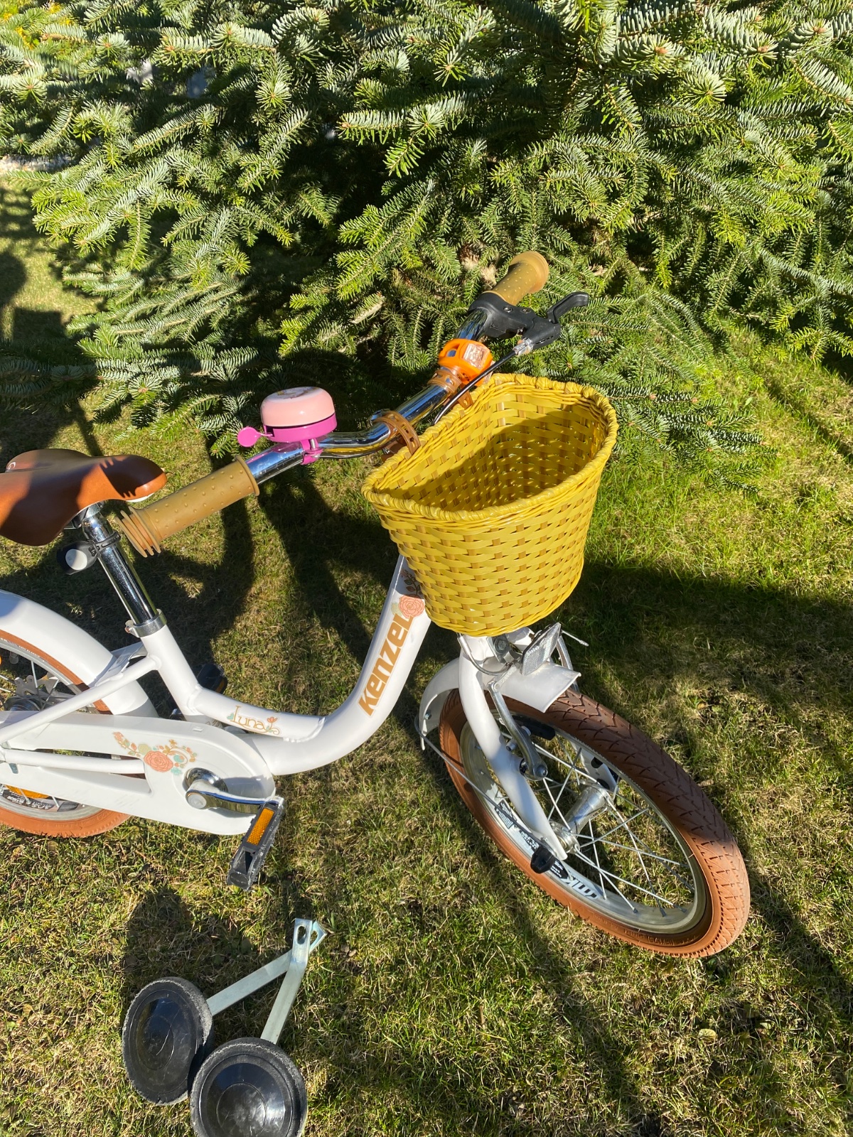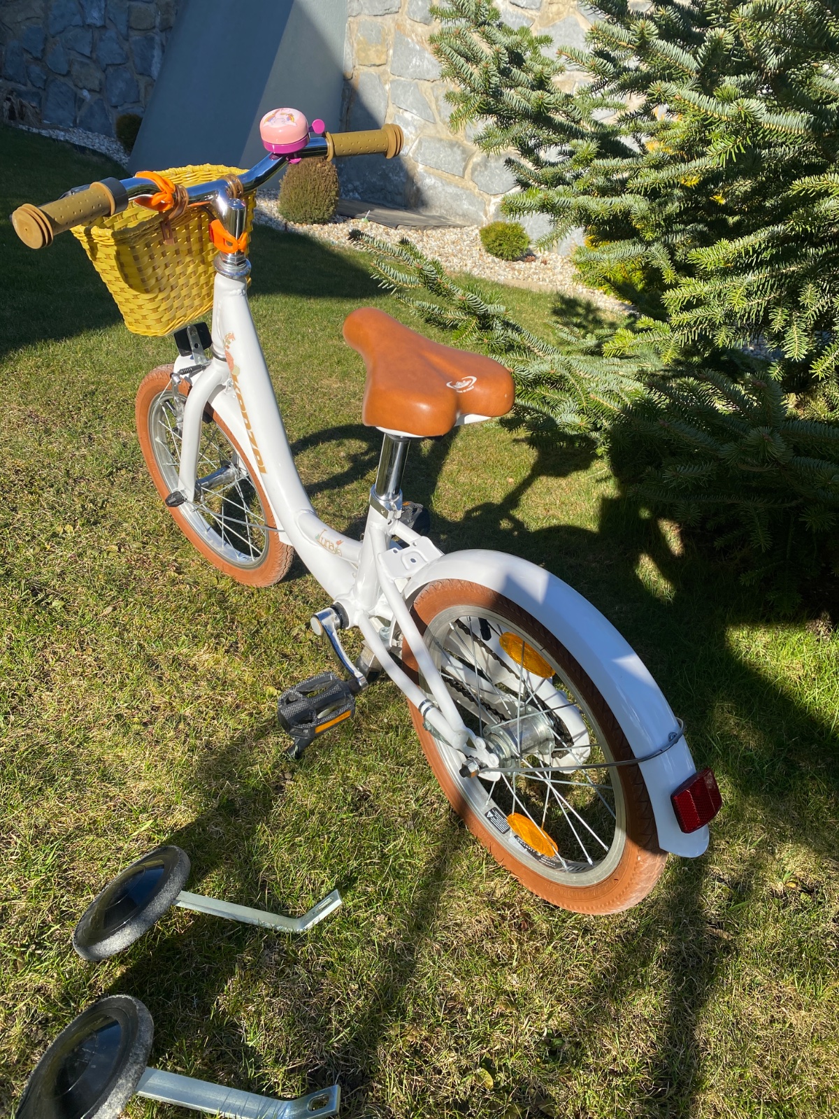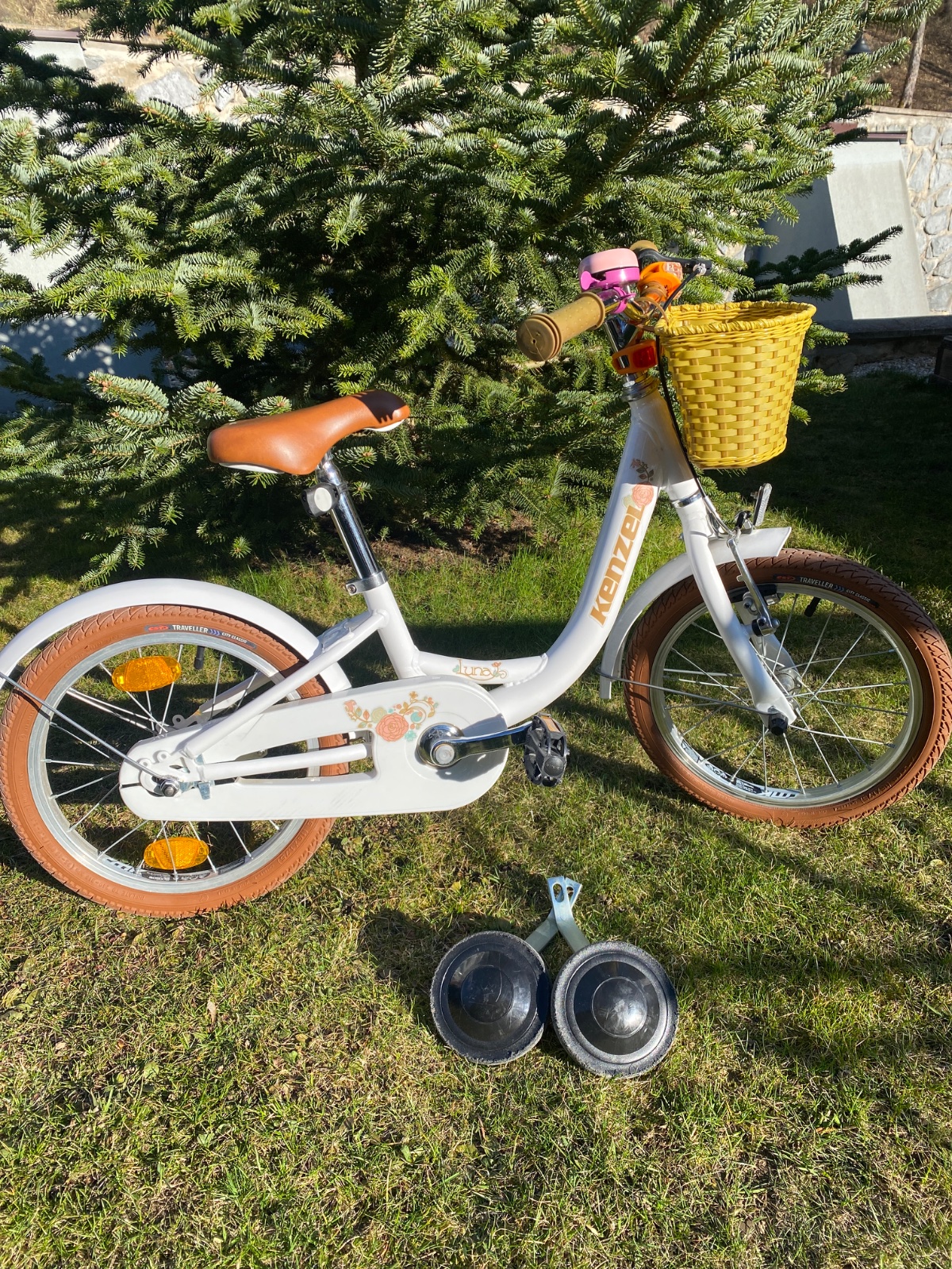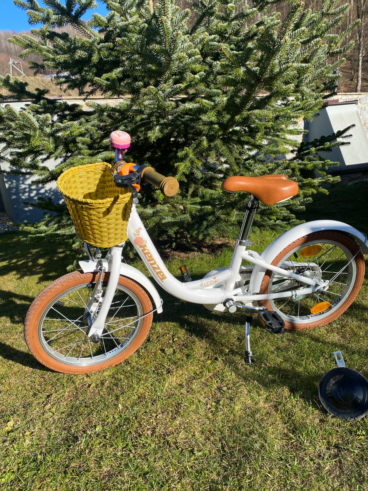 Predám detský dievčenský bicykel kenzel Lima. Používaný ale zachovalý. Ma aj estetické nedostatky, vid foto. Predávam ho s pomocnymi kolieskami a nosičom pre bábiky. Funkčný stojan a brzdy. Pre det...