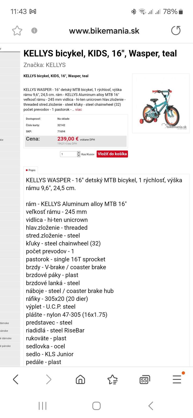 Detský bicykel 16 značky Kellys aj s pomocnými kolieskami, 110 eur, os.odber NZ
