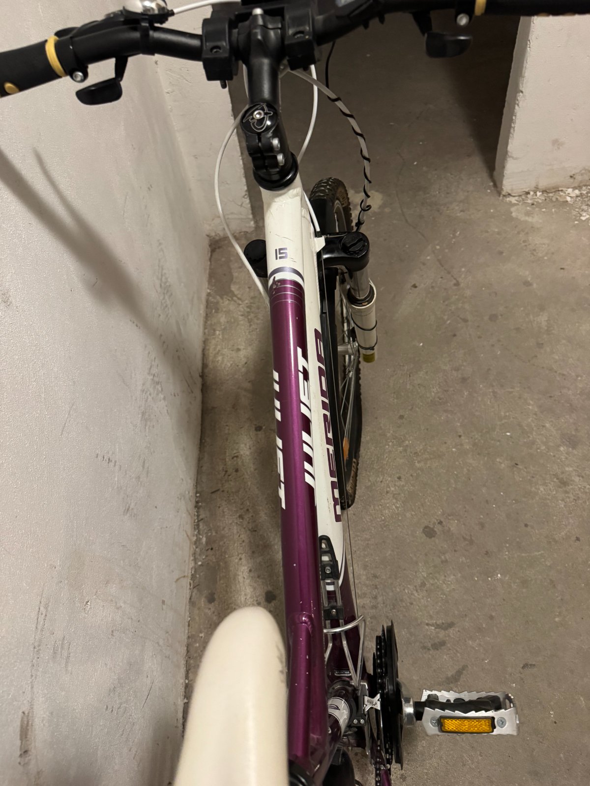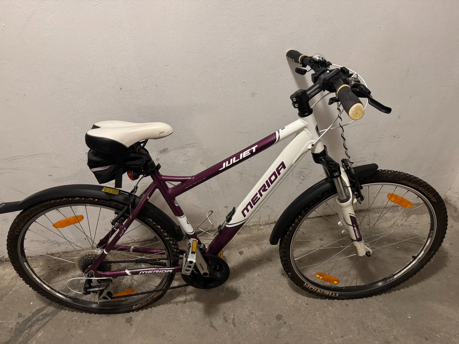 Iba osobný odber v ružinove. Pár rokov stál v pivnici nepoužívaný. Nie je hrdzavý. Určite bude potrebný nejaký servis. Merač km je prasknutý a sedadlo je znečistené. Bicykel má pod sedalom kapsičku, držiak na flašu, stojan a v predu konštrukciu na košík, ktorý už nemám.