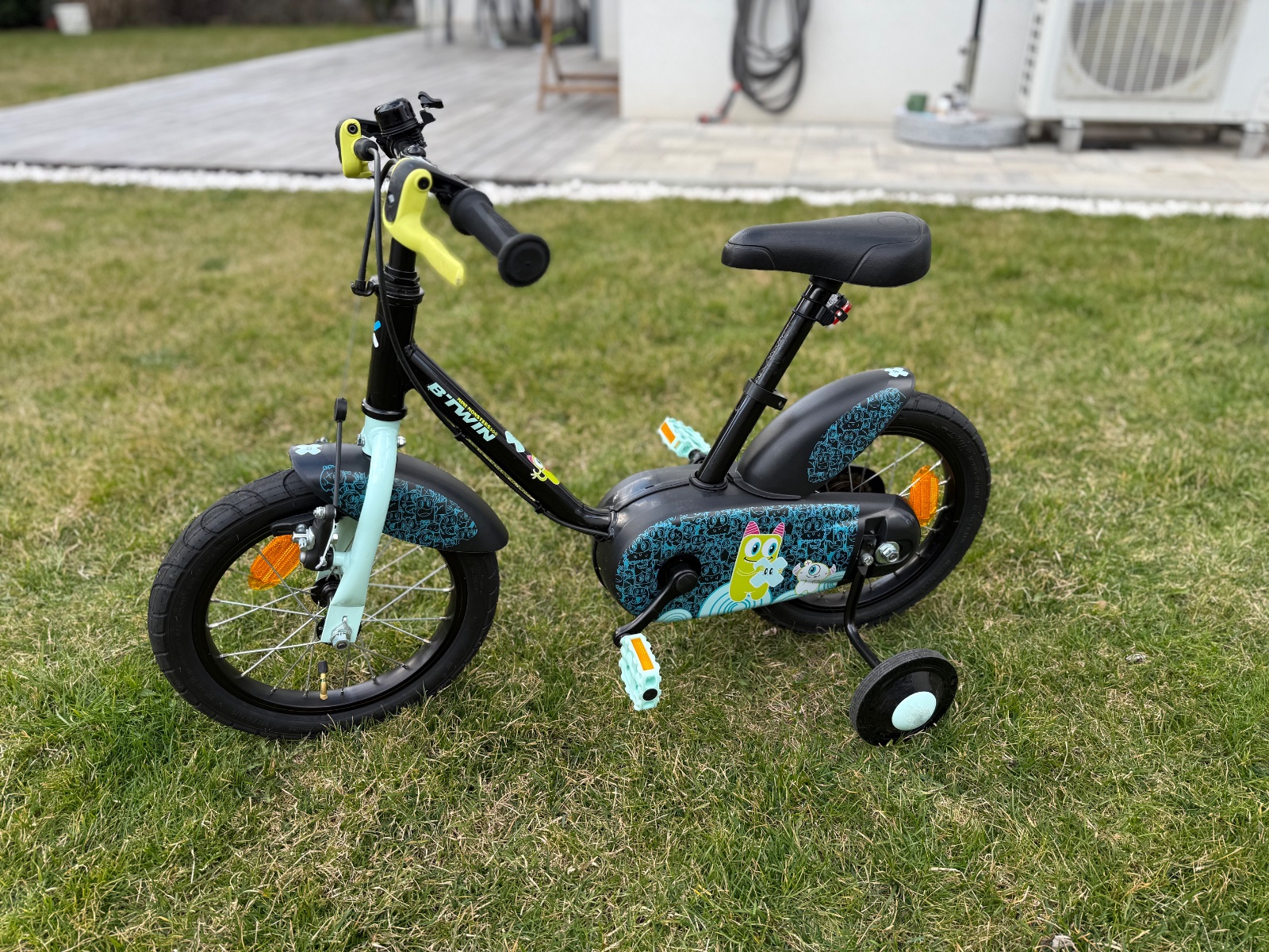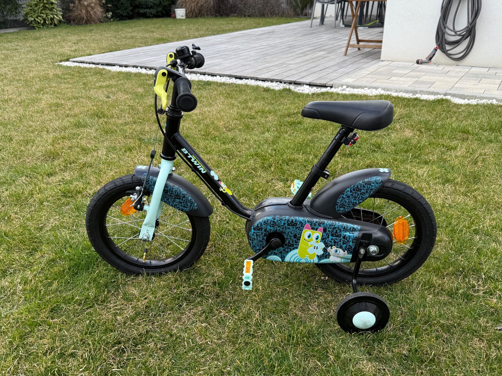 Predam detsky bicykel 14 palcove kolesa, pomocne kolieska (volitelne). Znacka decathlon, pouzivany malo pocas 1 sezony.
