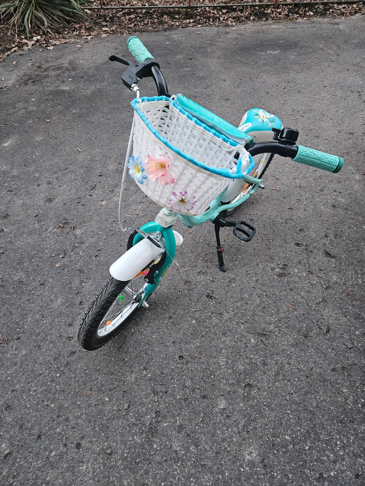 Kupovany nový u kubovica kellys ema velkost 16 v krasnej tyrkysovej farbe pouzivany len dcerkou dokupovany stojan košík mam k nemu aj pomocne kolieska len niesu na foto ptrdam k tomu len ma jedno oskretie ako je brzda vidno na foto len osobný odber Martin pc 290€
