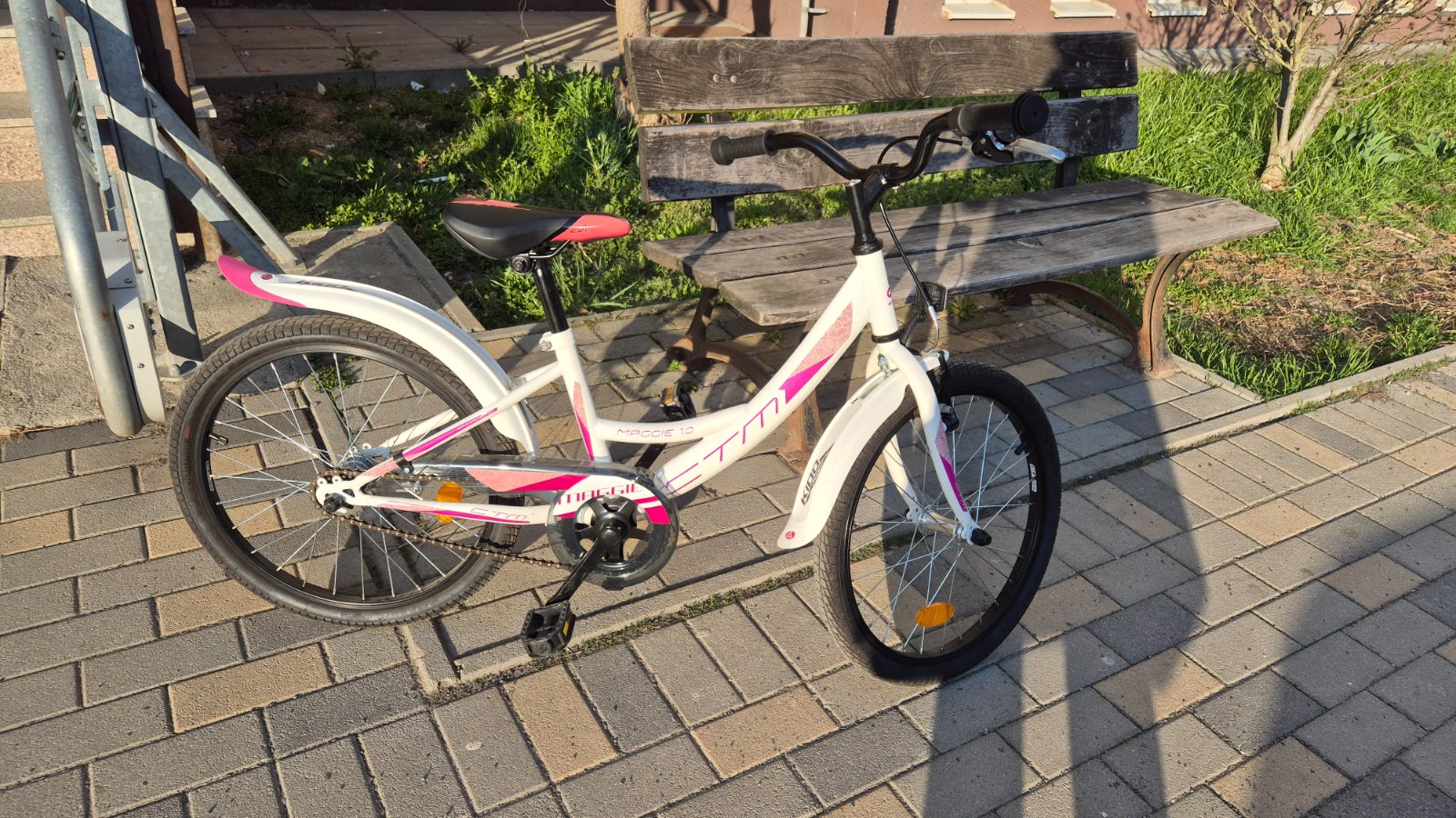 dievčenský bicykel, velkost kolies 20, pekný používaný stav, s košíčkom.