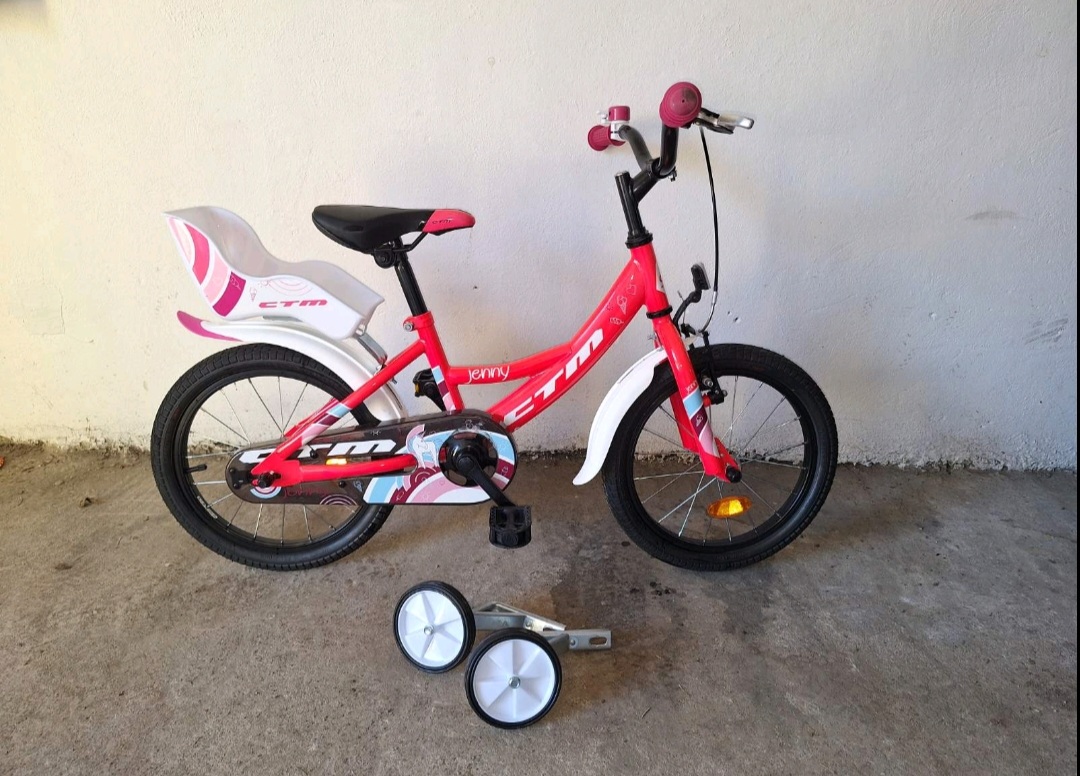 Používaný iba našou dcérkou v top stave krásnej ružovej farby (nedá sa pekne odfotit skutočnú farbu preto prikladám aj originál foto) +nové pomocné kolieska my sme nepotrebovali :)
