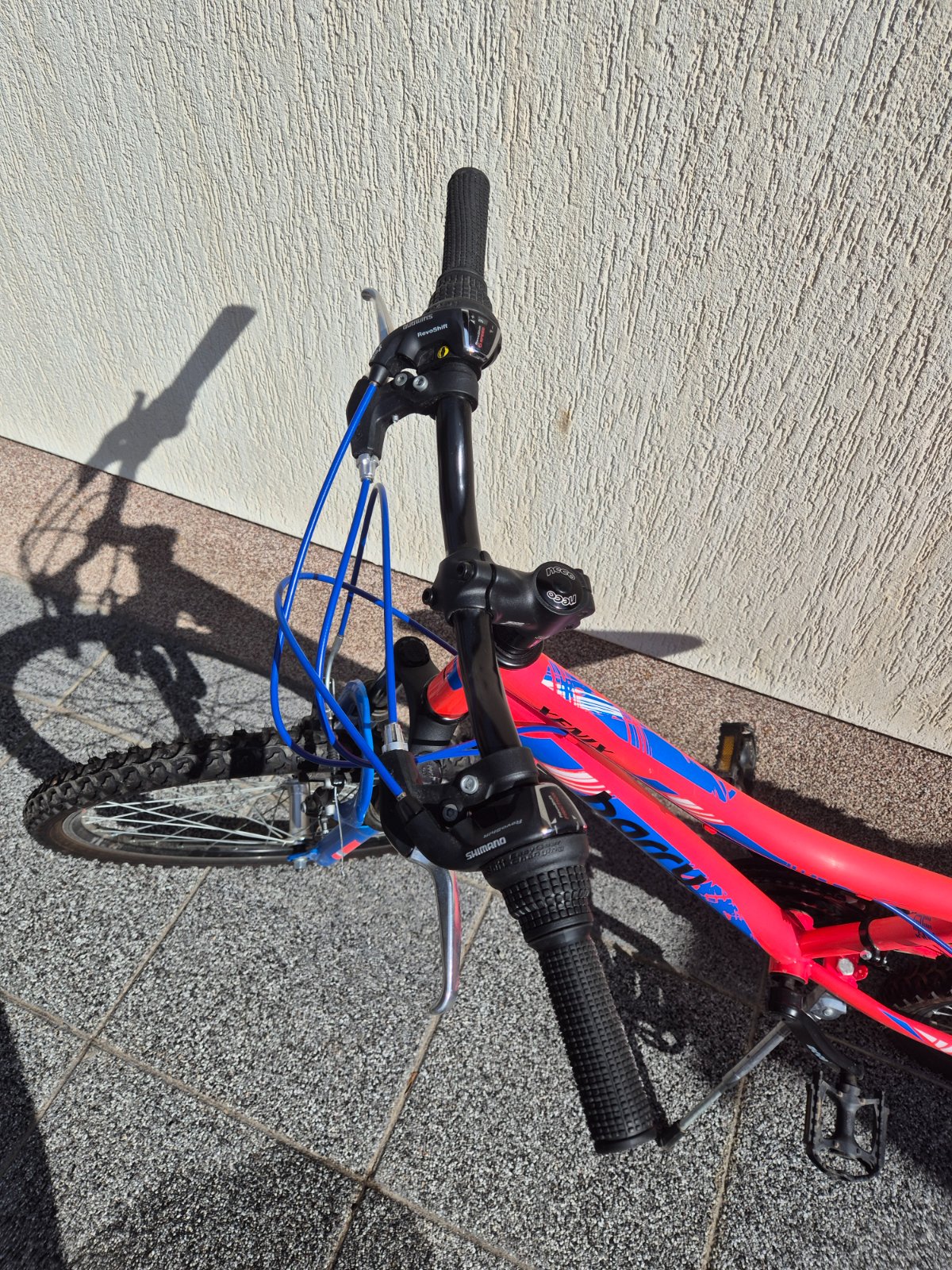 Na predaj používaný , plne funkčný, detský kvalitný, hliníkový bicykel značky MERIDA 24, veľkosť kolies 24 veľkosť kolies – 24 materiál rám – odľahčený hliník ALUMINIUM 6061 vidlica – odpružená rad...