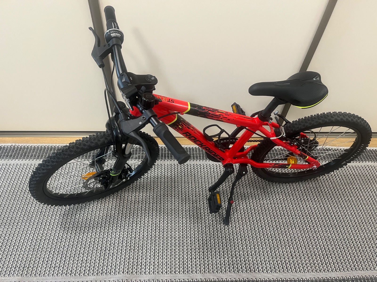 Posúvam detský horský bicykel Rockrider ST 900 (20″) po dcérke je minimálne používaný má jemné oškrenia na pedáloch a na brzde inak si dovolím tvrdiť že vyzerá ako nový.