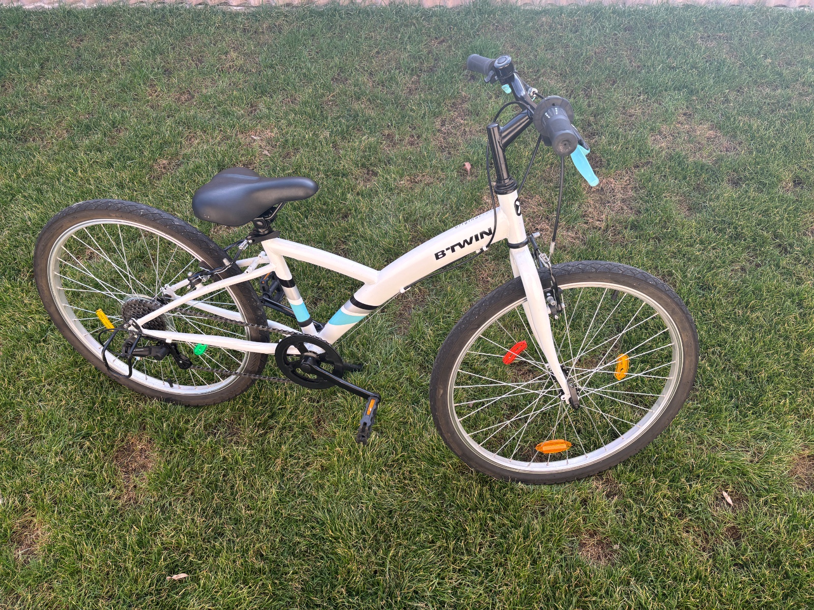 Predám detský 24-palcový trekingový bicykel značky BTWIN, kúpený v Decathlone. 6 prevodov/rychlosti, zvoncek, stojan. Unisex, dievcensky / chlapcesnky pre deti od 8 do 12 rokov (130-150 cm)