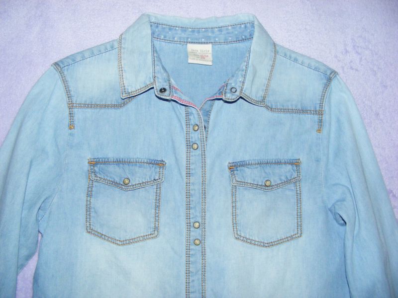 Rifľová košeľa zn. Zara, zapínanie na patenty, funkčné náprsné vrecká. Materiál 100% bavlna.