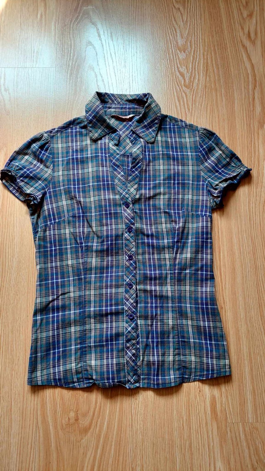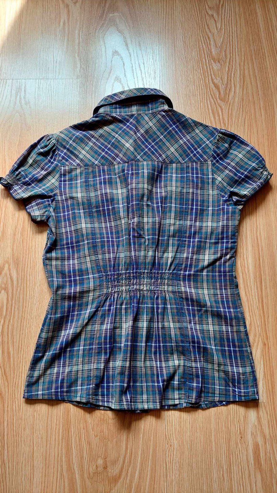 Dámska károvaná košeľa veľkosť L. Vzadu je nazberkaná, pekne sedí na postave. Bez poškodení. Cena 5€ + poštovné