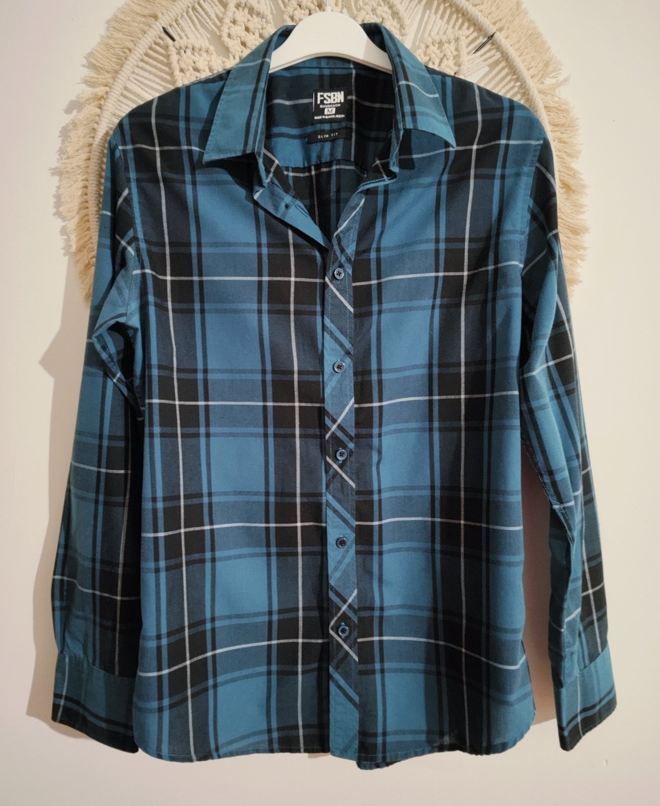 Predám kvalitnú košeľu od House, top stav, k maximálnej spokojnosti. Sedí M. Dĺžka 72cm, šírka popod pazuchy 54cm, rukáv od krku 79cm. Slim fit strih, tenká bavlna, imitácia rifloviny