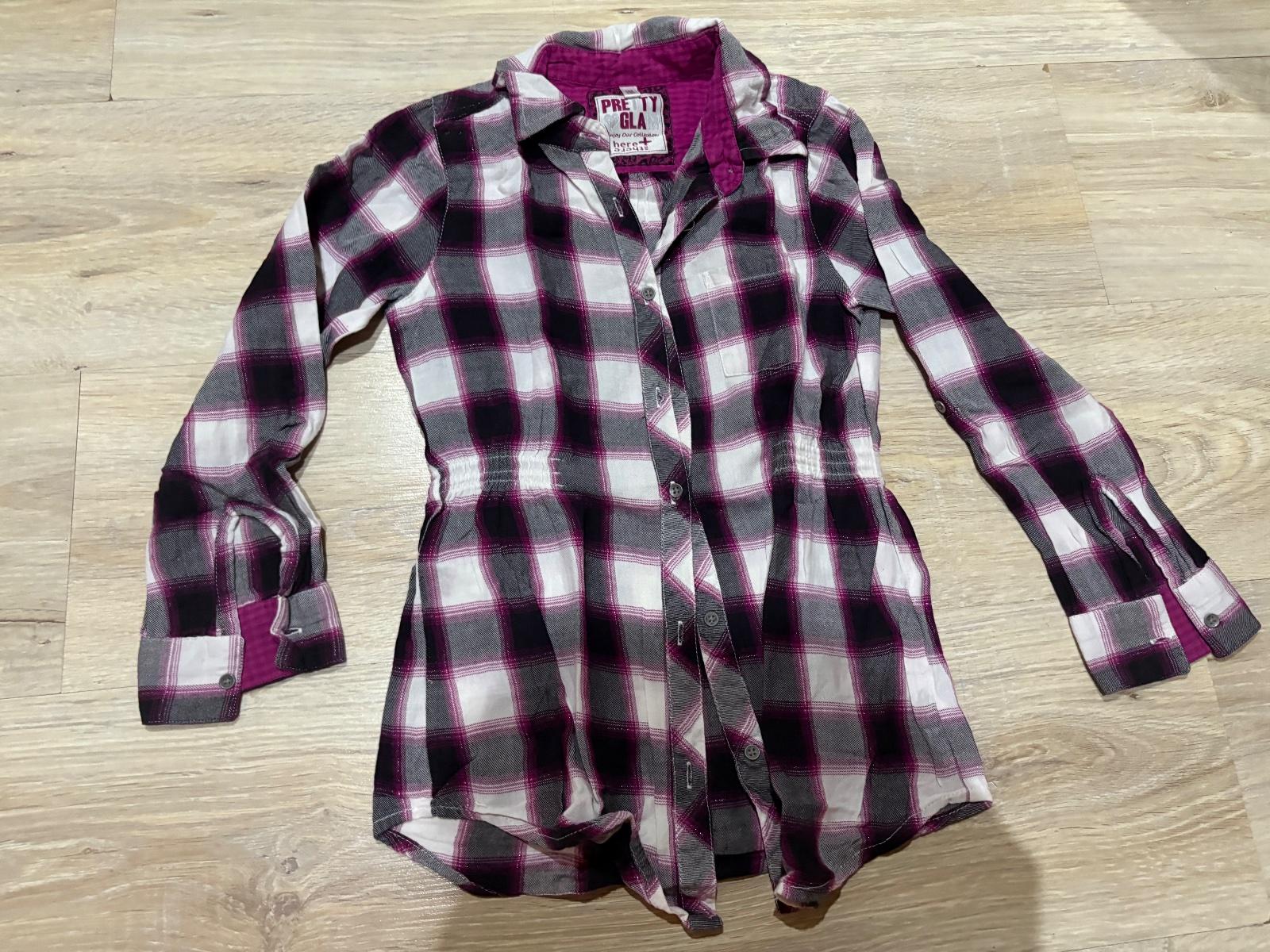 Predám kosielku zapinanie na na gombíky zn:pretty glam nosena ale ok niekde sa moze nájsť zmolinka nic badateľne dlzka57cm,sirka38cm,od krku po rukav55cm posta1 e obycajne oby skr