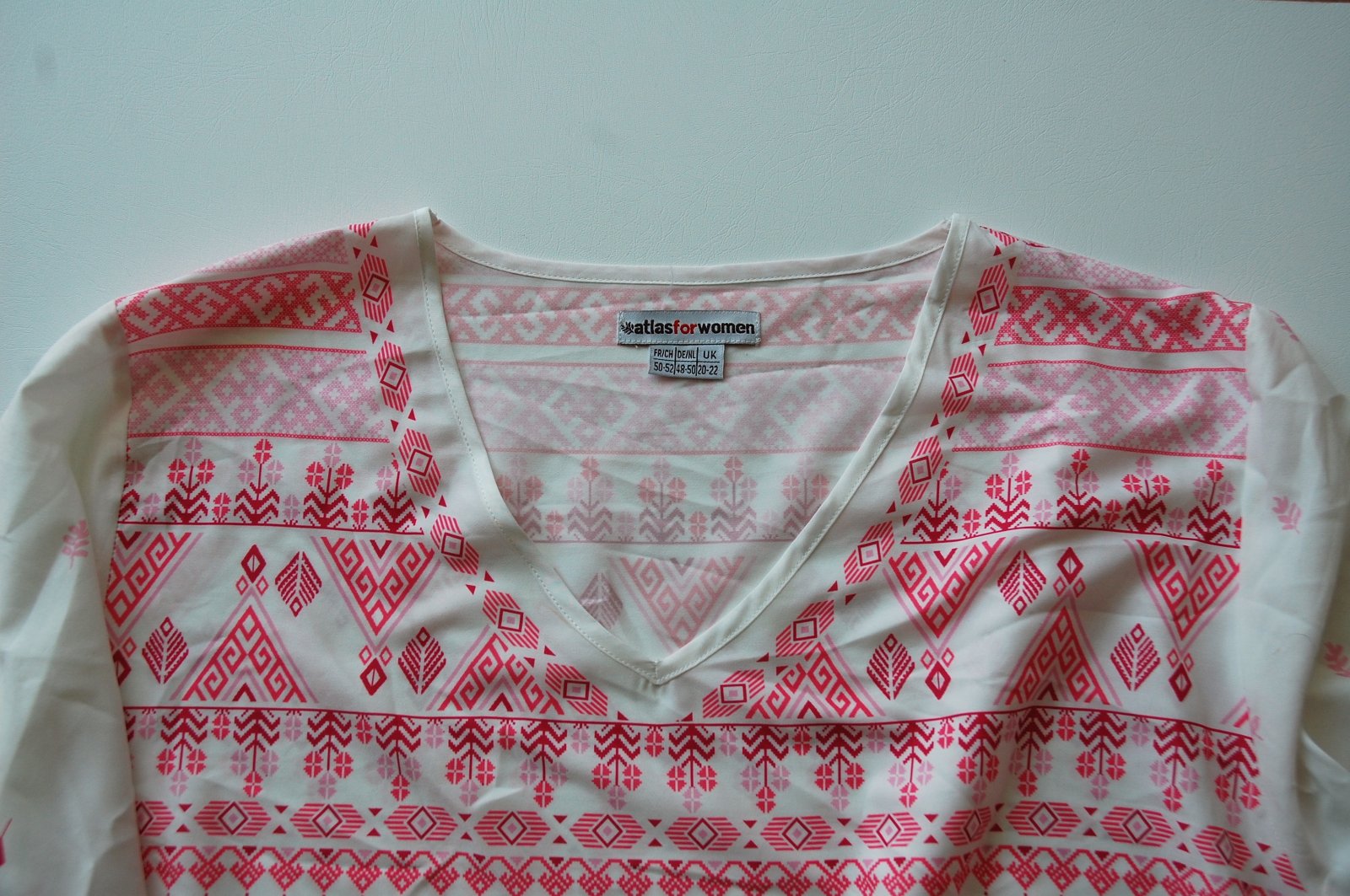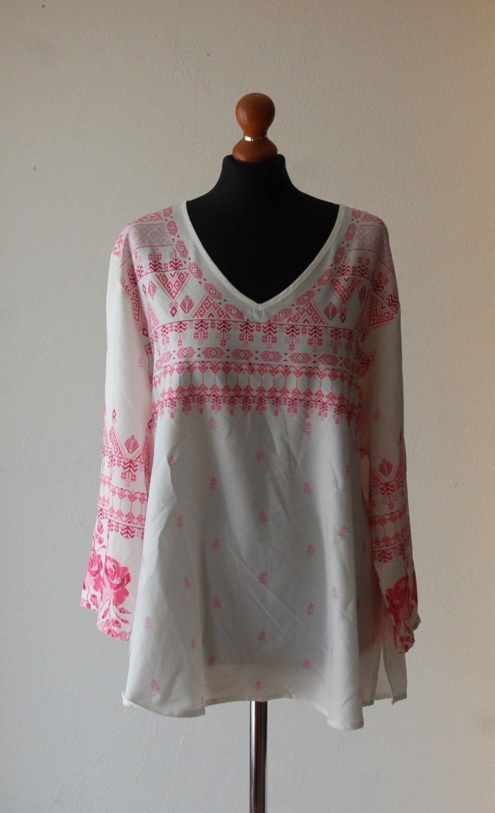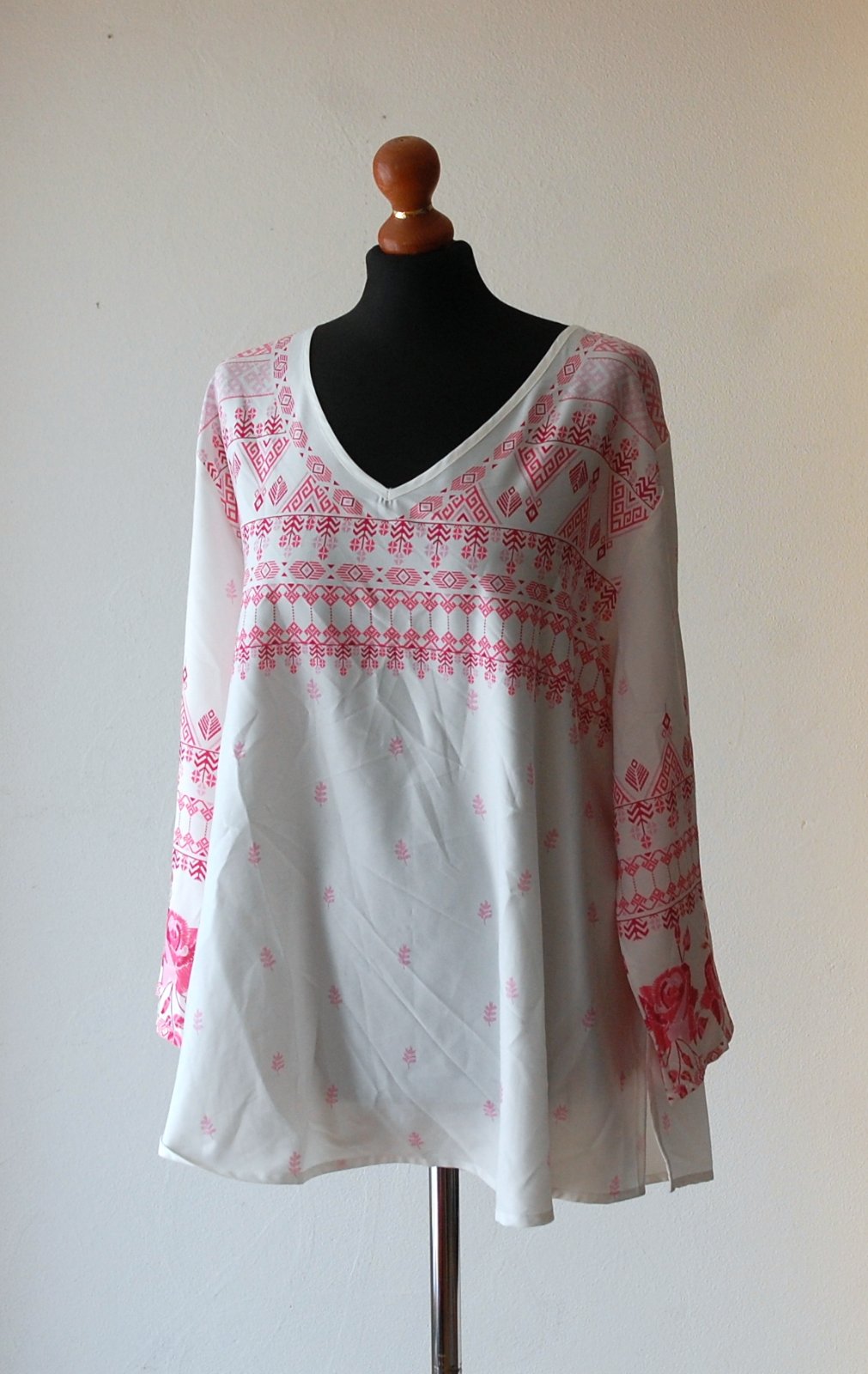 Predám krásnu dámsku blúzku značky Atlas For Women v bielej farbe s výraznou ružovou výšivkou v ľudovom/boho štýle.