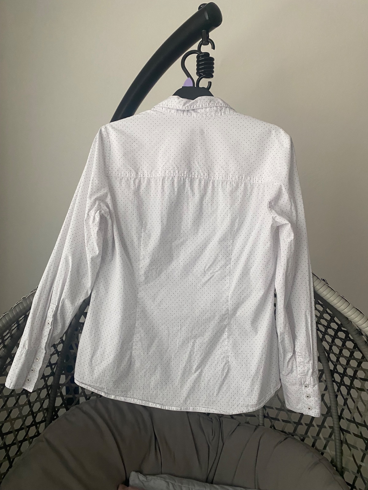 Ponúkam košeľu, buela s čiernymi bodkami, primerane zachovalá.Rozmer dĺžka 64cm, šírka cez prsia 48cm. Cena s poštou 5.50€