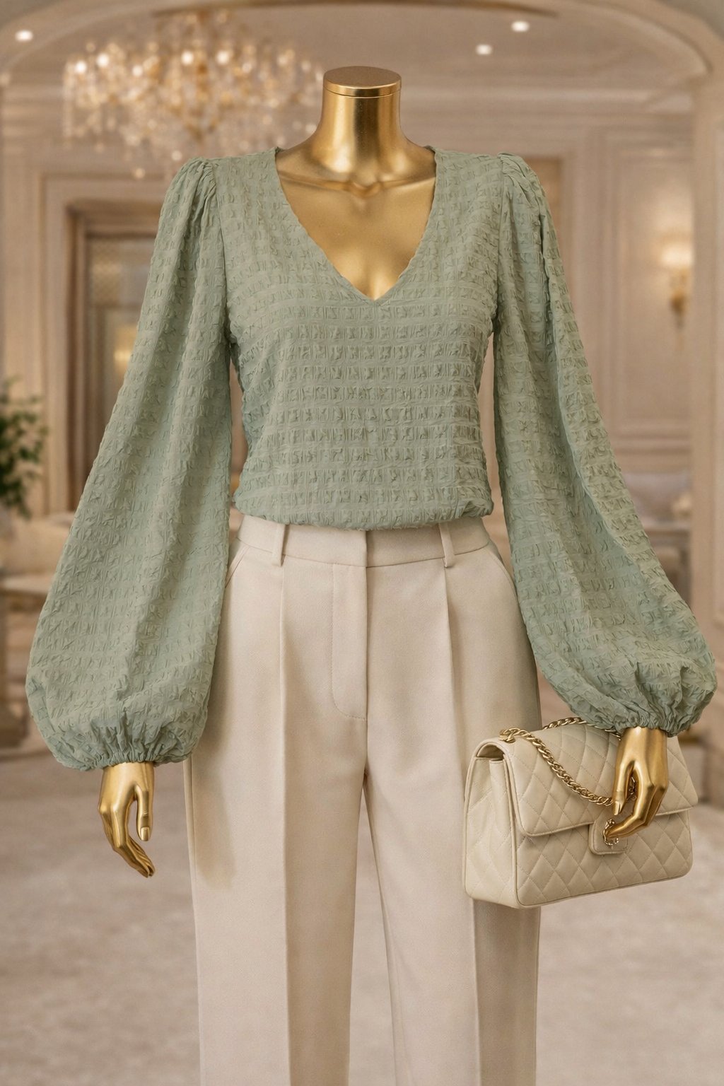 Blúzka má efektné balónové rukávy a krásnu textúrovanú látku.