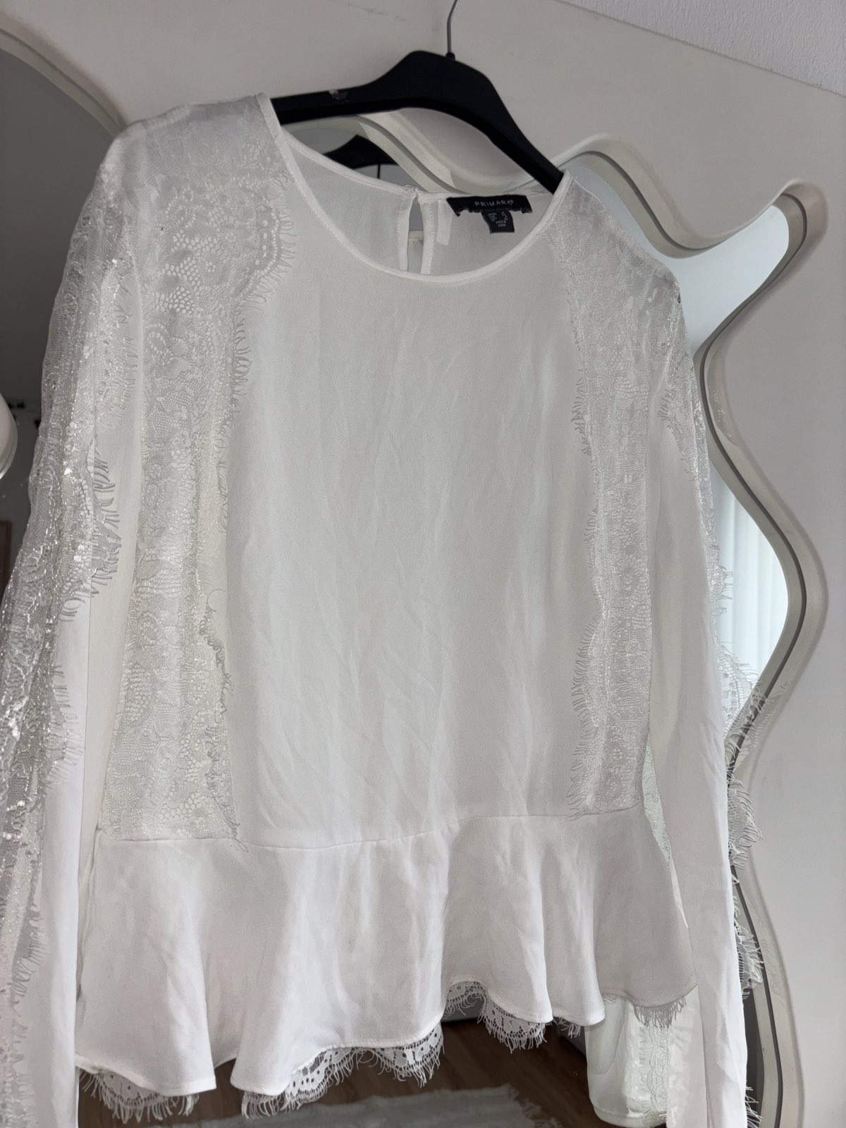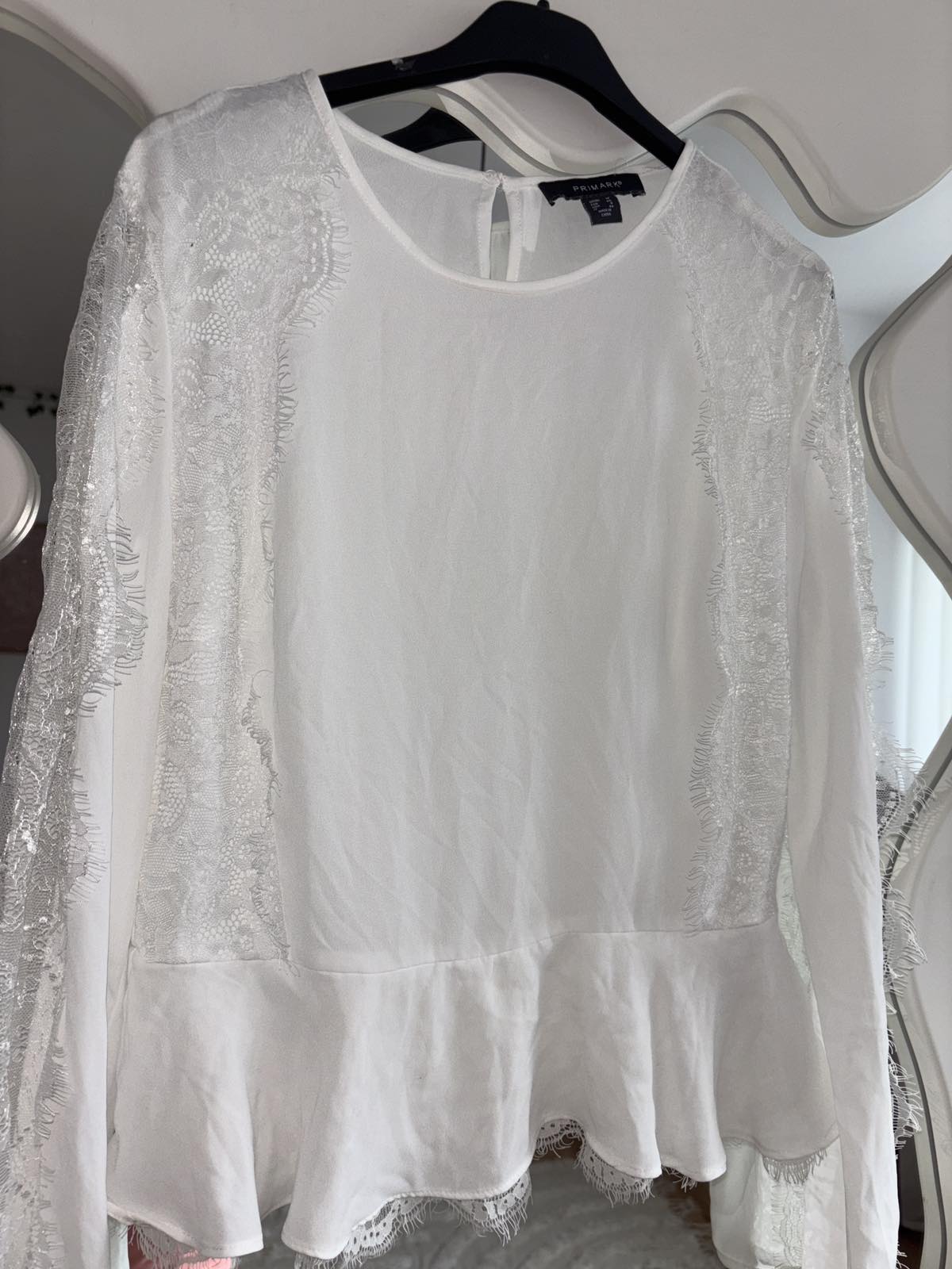 Bez známok nosenia, jemná s čipkou, veľkosť UK 12, sedí na 38/40,s.pod pazuchami 50 cm,d.56 cm
