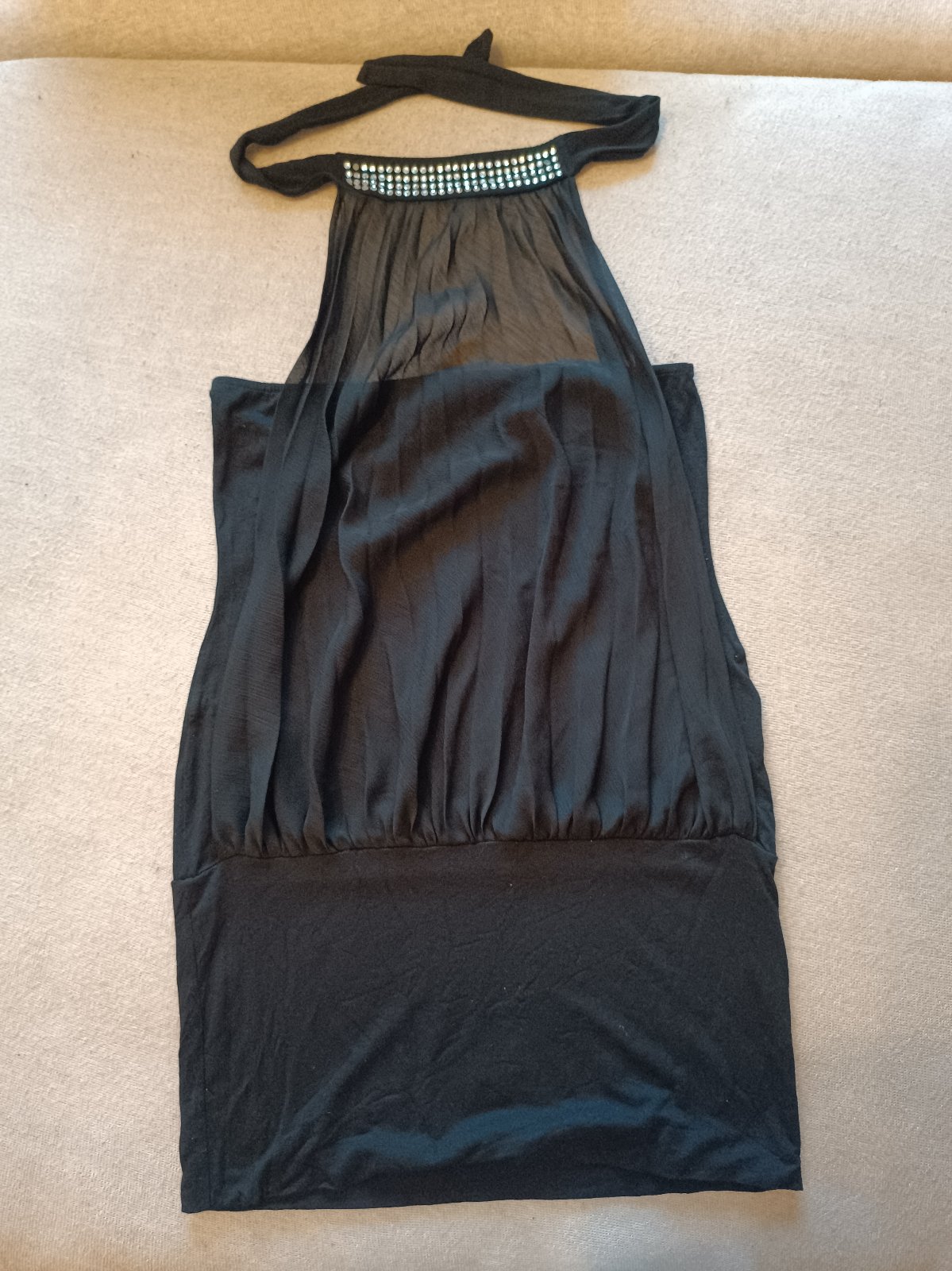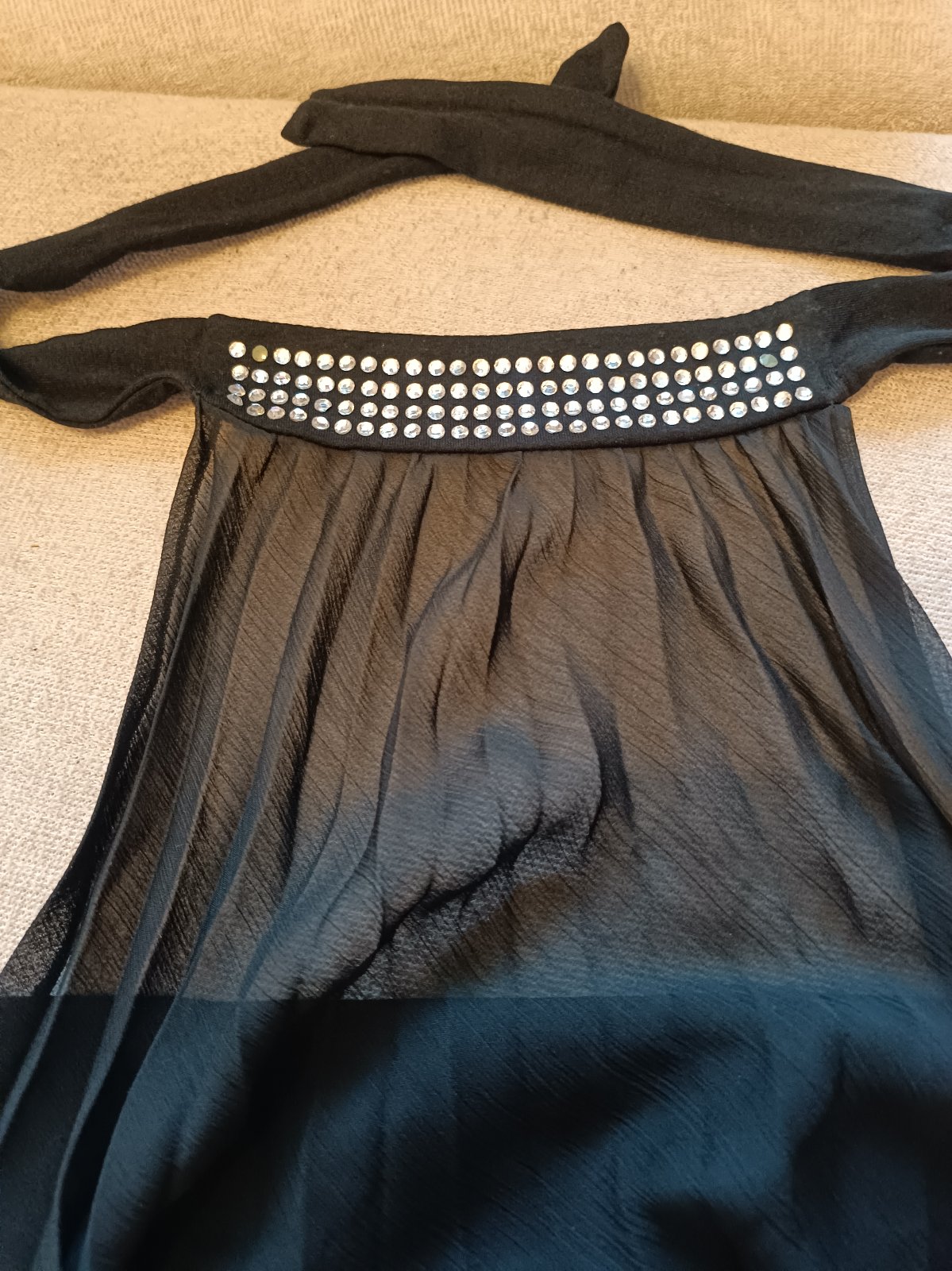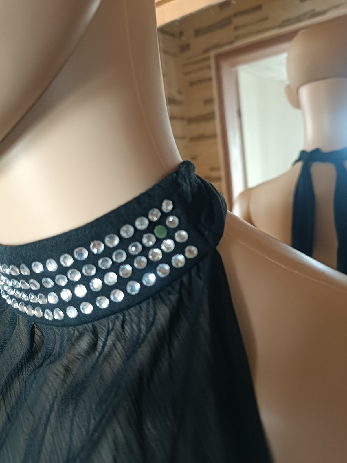 Blúzka, značka Bonprix, veľkosť 36/38, cena 12 €. Zaväzovanie okolo krku. Asi dva kamienky vypadnuté.