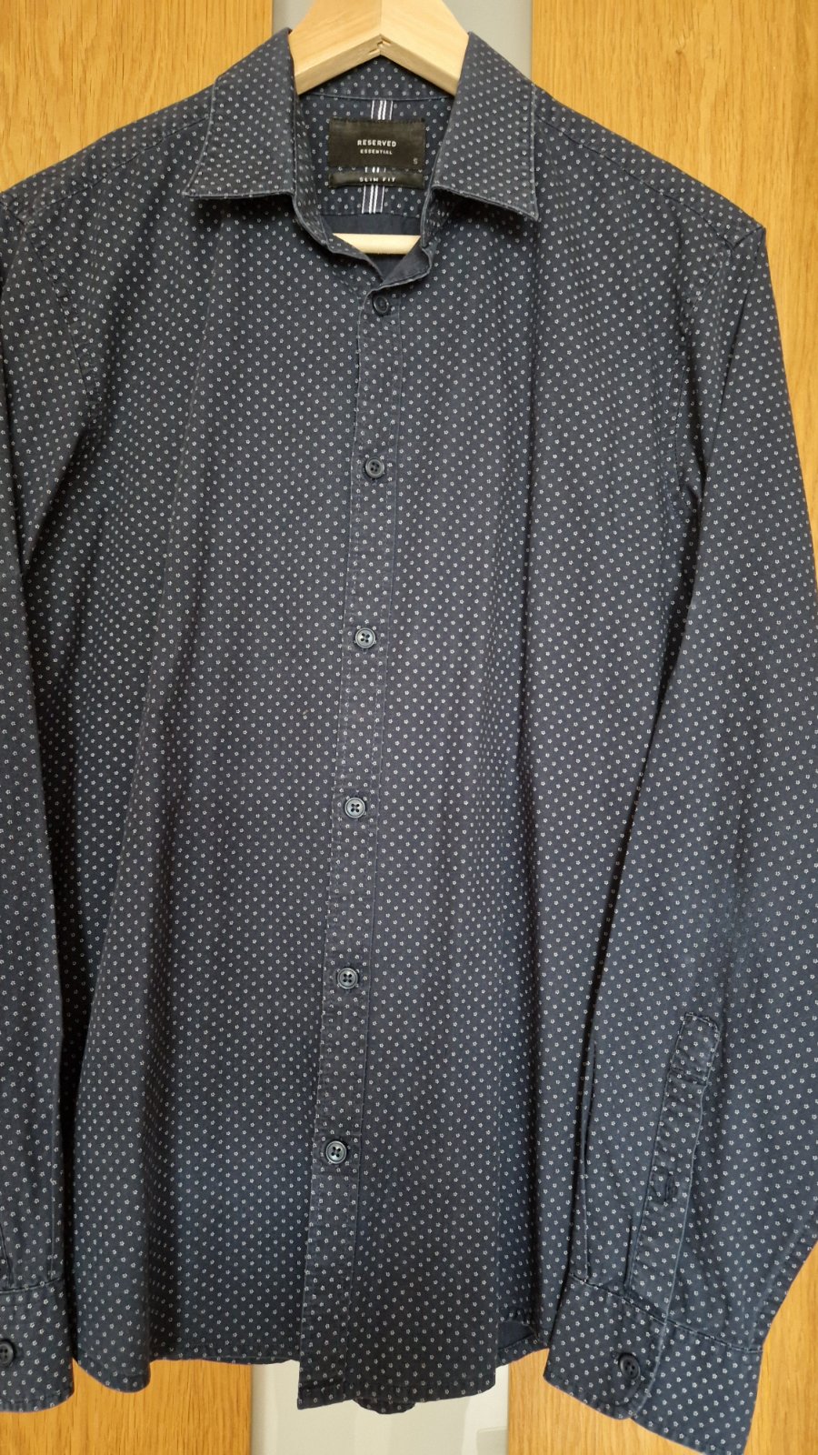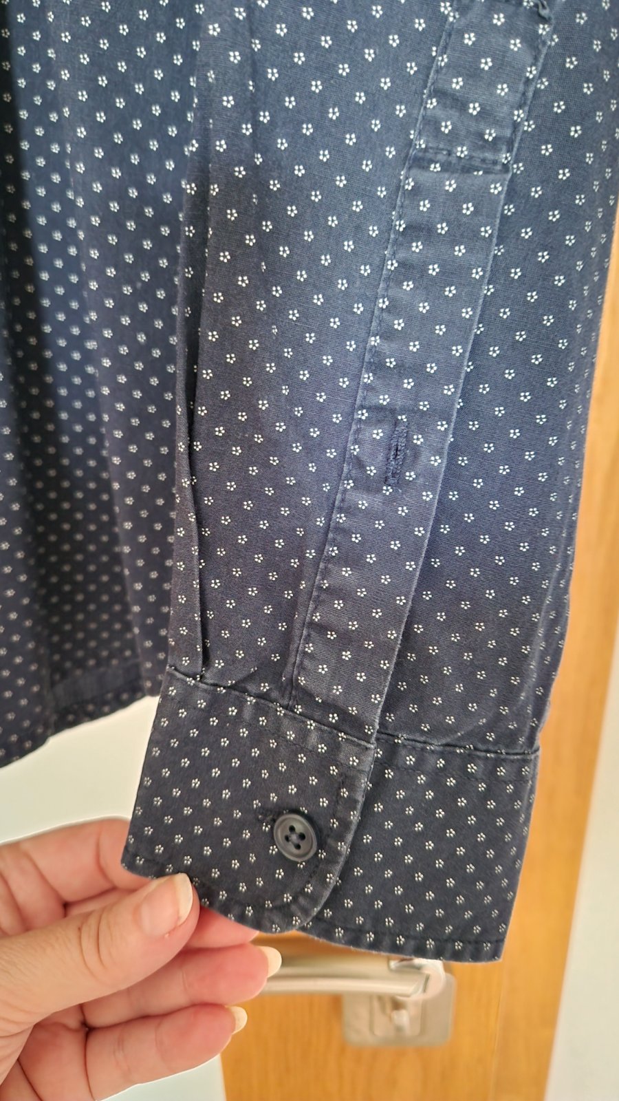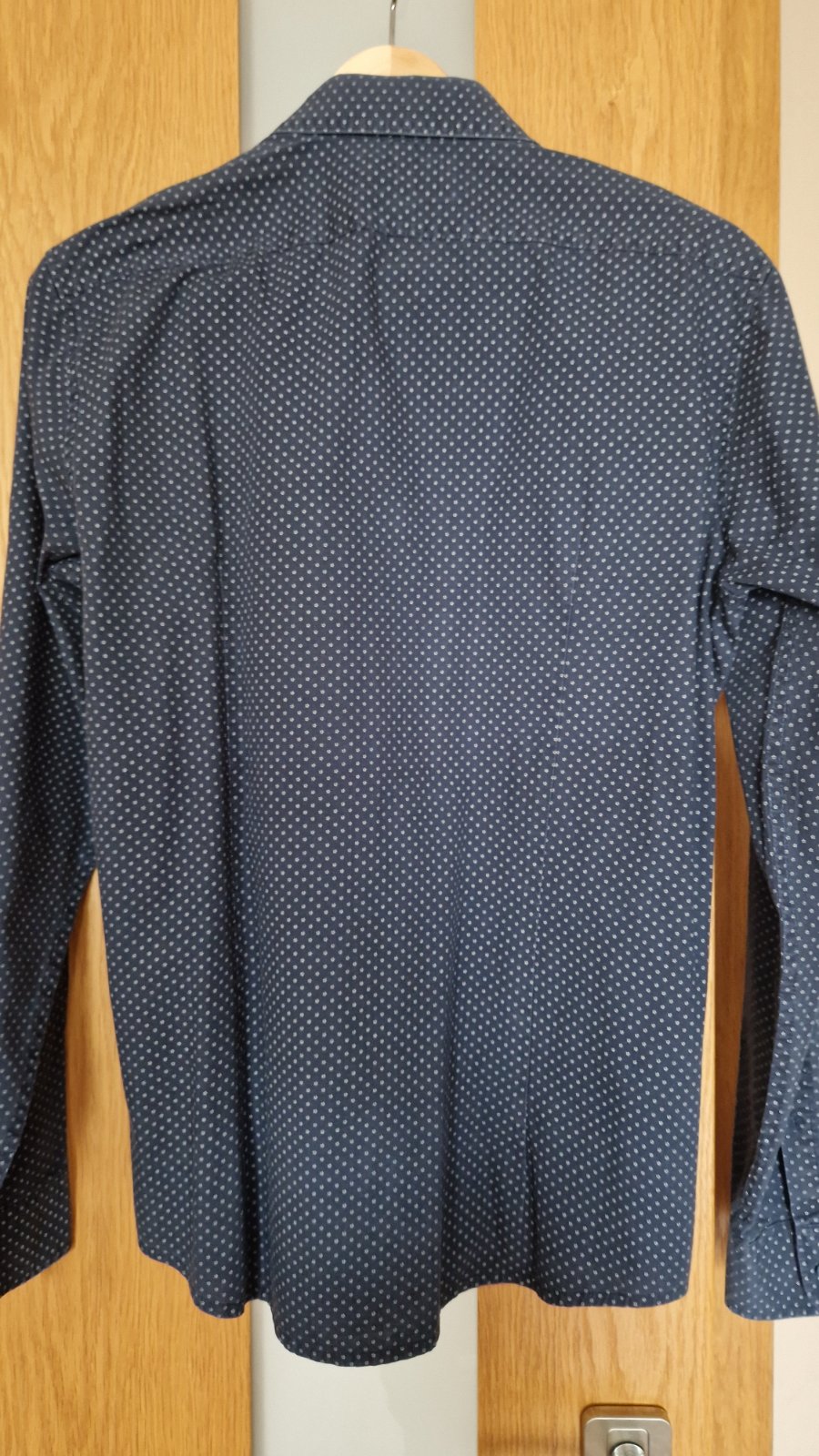 Obľúbená, nosená košeľa, ale ešte poslúži. Dobrý stav. Slim fit. Nosenie vidno iba okolo goliera. Mám aj iné košele po synovi v Top stave. Pozrite inzeráty.