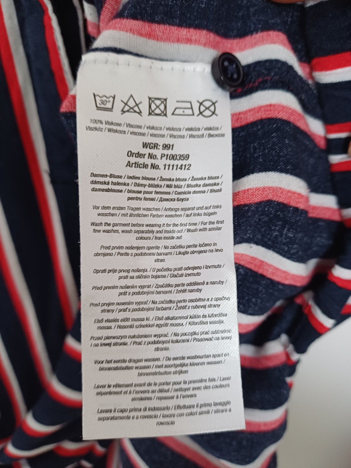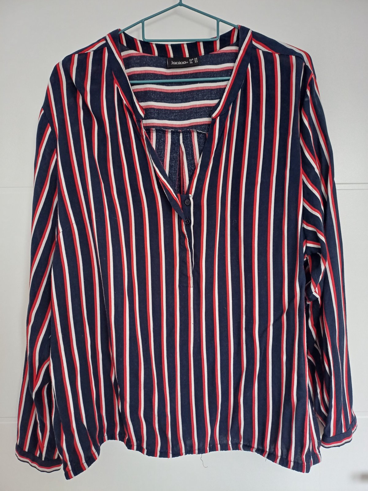 Predám dámsku pásikavú blúzku v odtieňoch tmavo modrej, červenej a bielej faby.