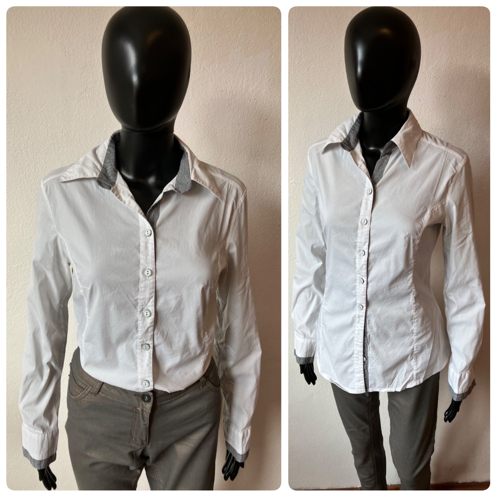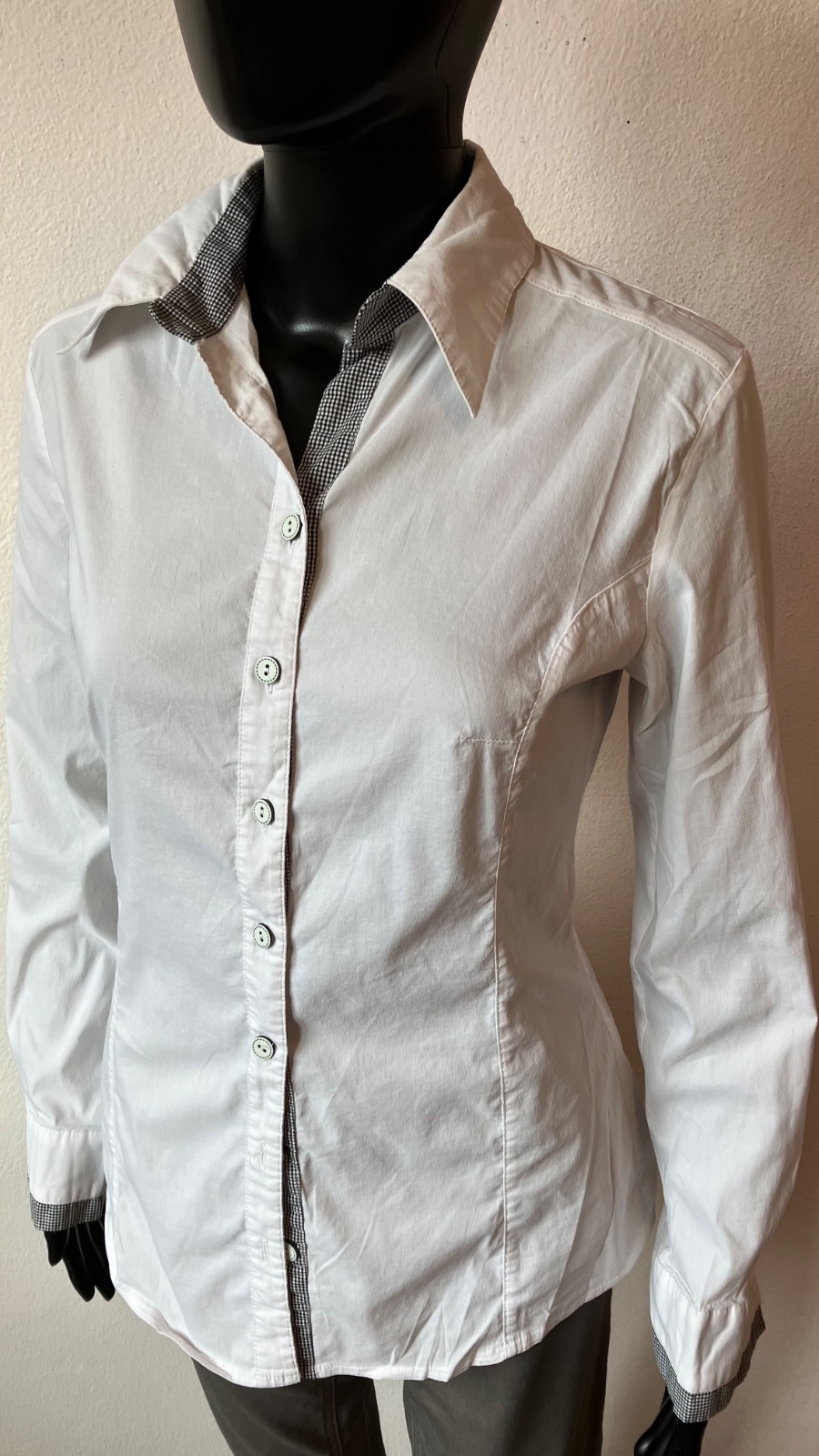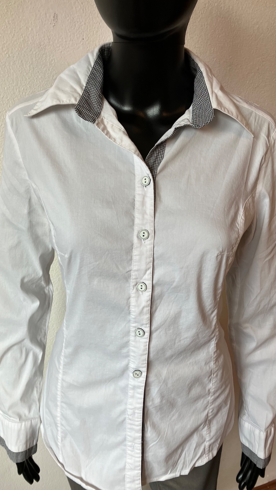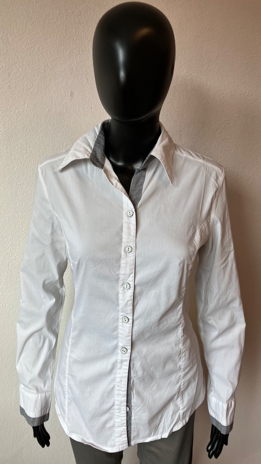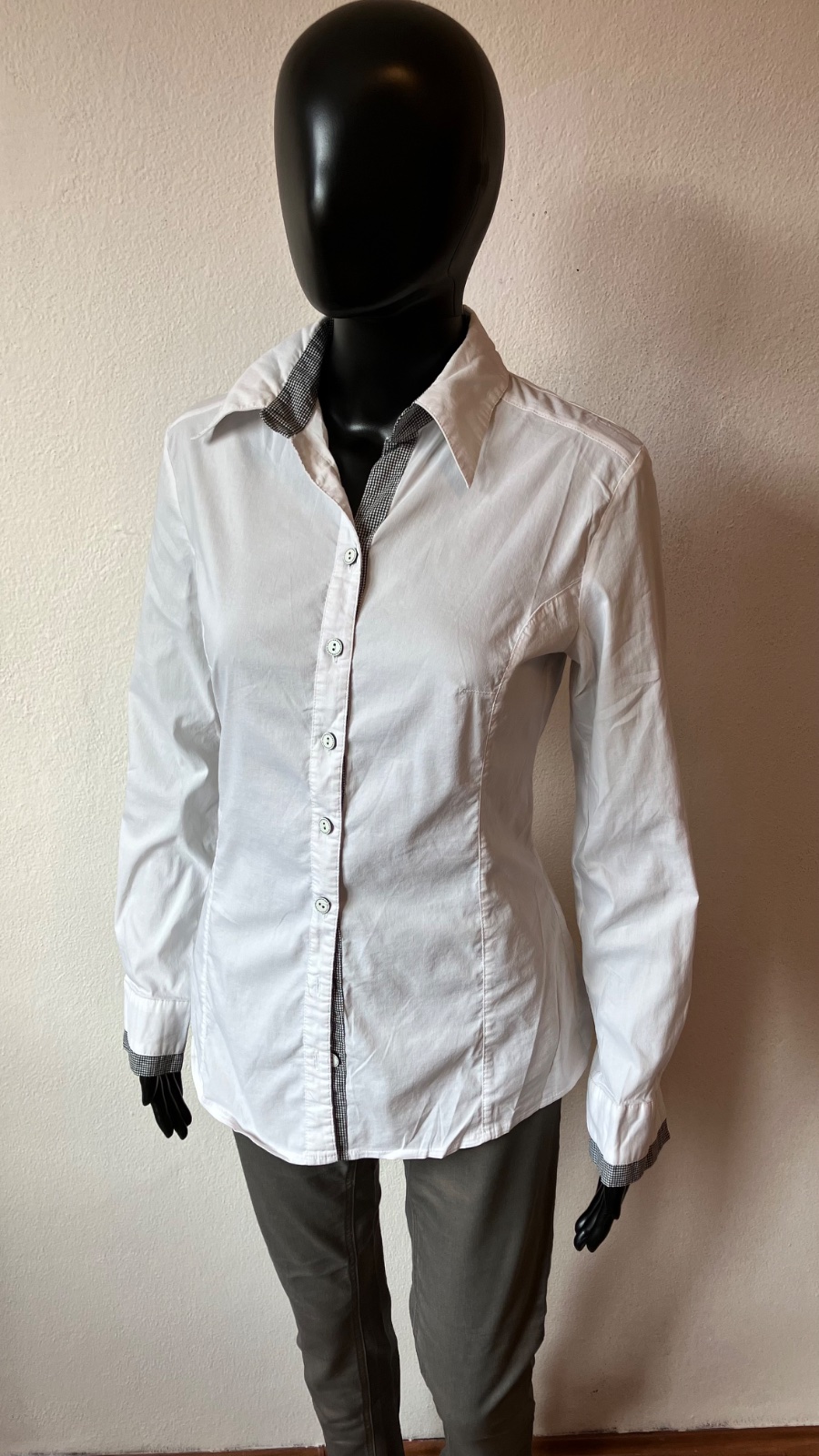 Dámska biela košeľa s dlhým rukávom, elastické, zapínanie na gombíky, veľkosť cca M.