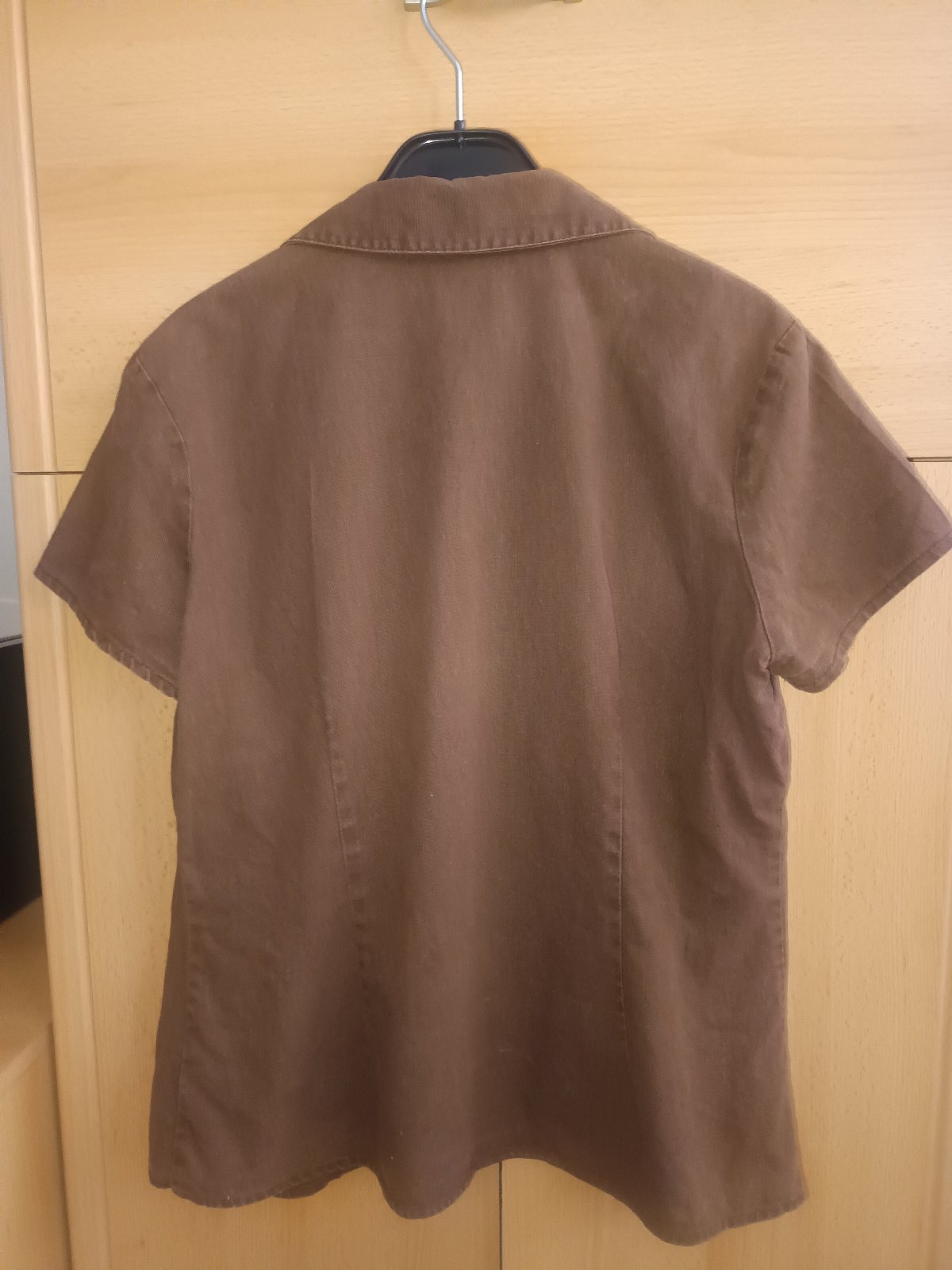 - čokoládová elegantno-športová košeľa, ľahký letný materiál, 2,00€ - priesvitná blúzka s poškodenými flitrami zdarma ku košeli alebo 0,5€