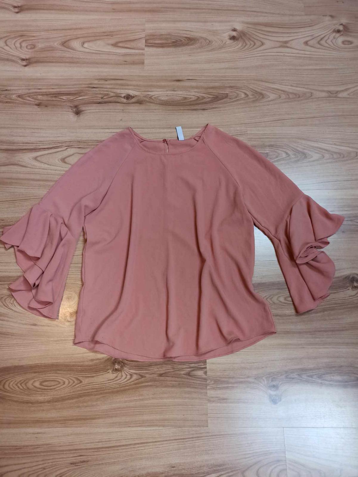 Blúzka s krátkymi rukávmi v žiarivej losovo-červenej farbe. Je na gombičky, velkostne zodpovedá S. Oblečená asi 2krát.