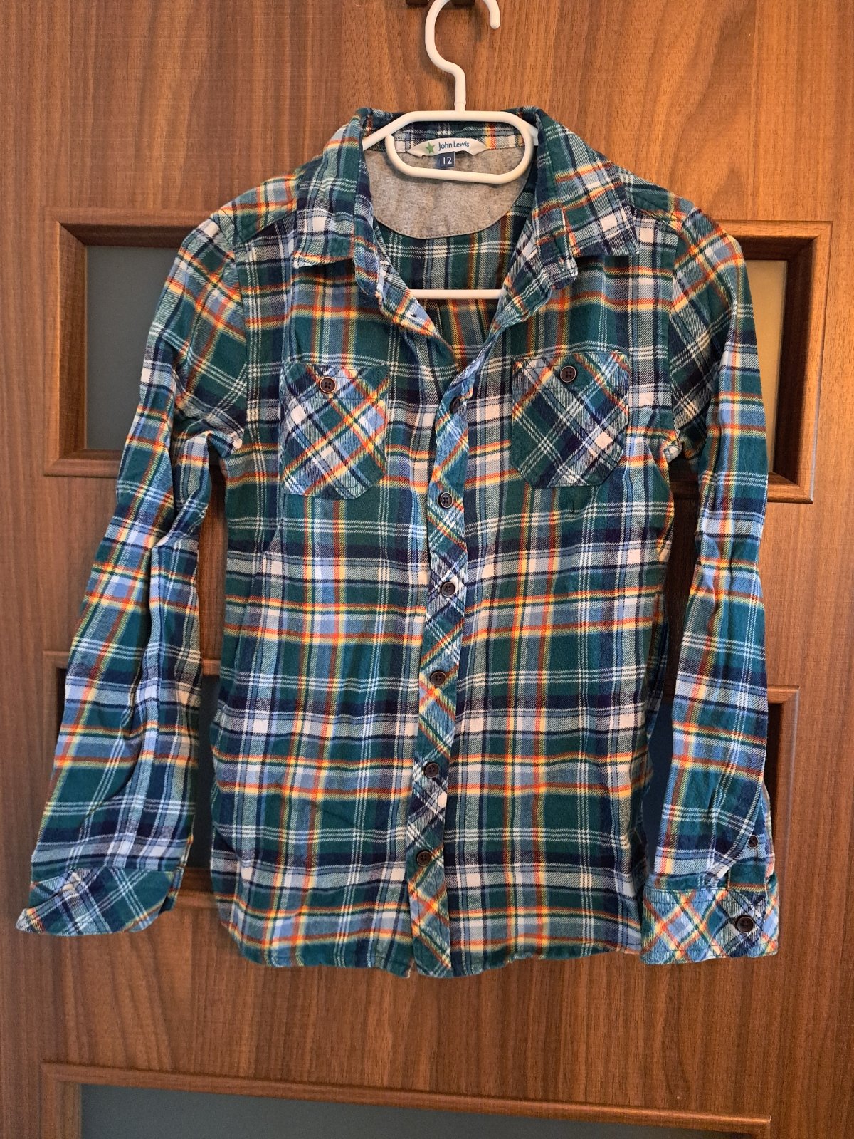 Modro zeleno žltá károvaná kvalitná značková flanelová košeľa na 11/12rokov