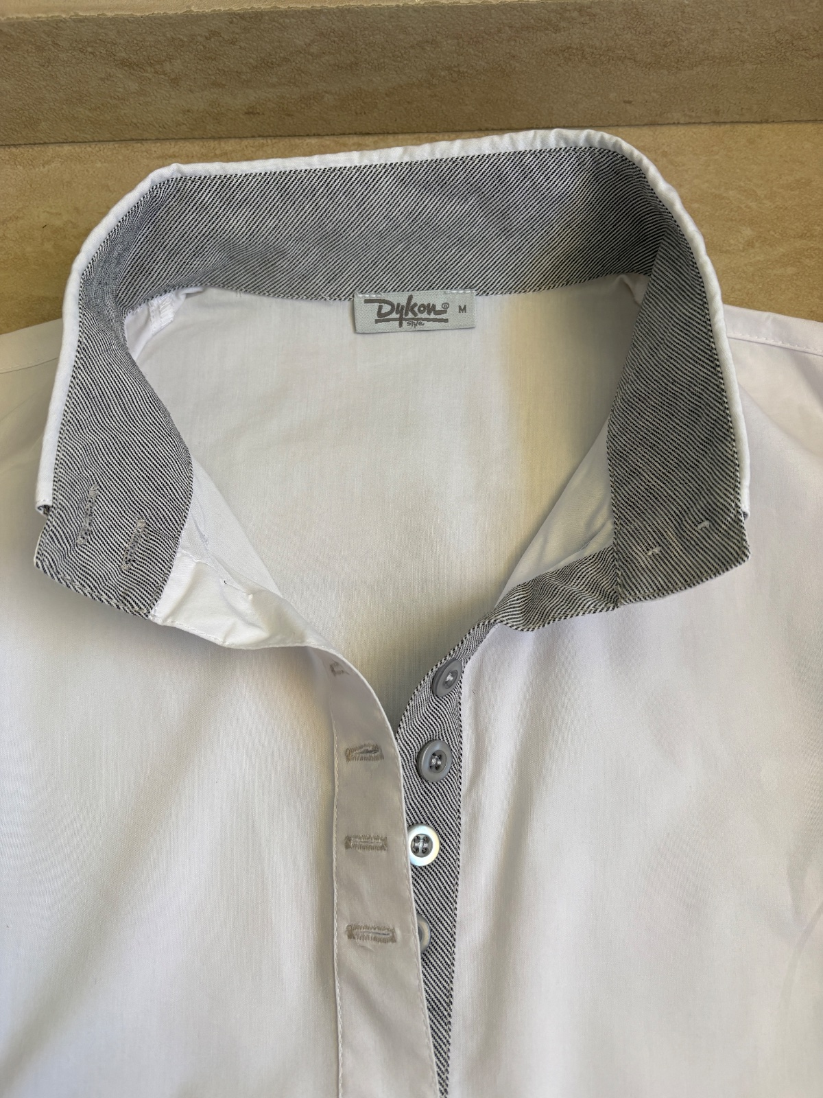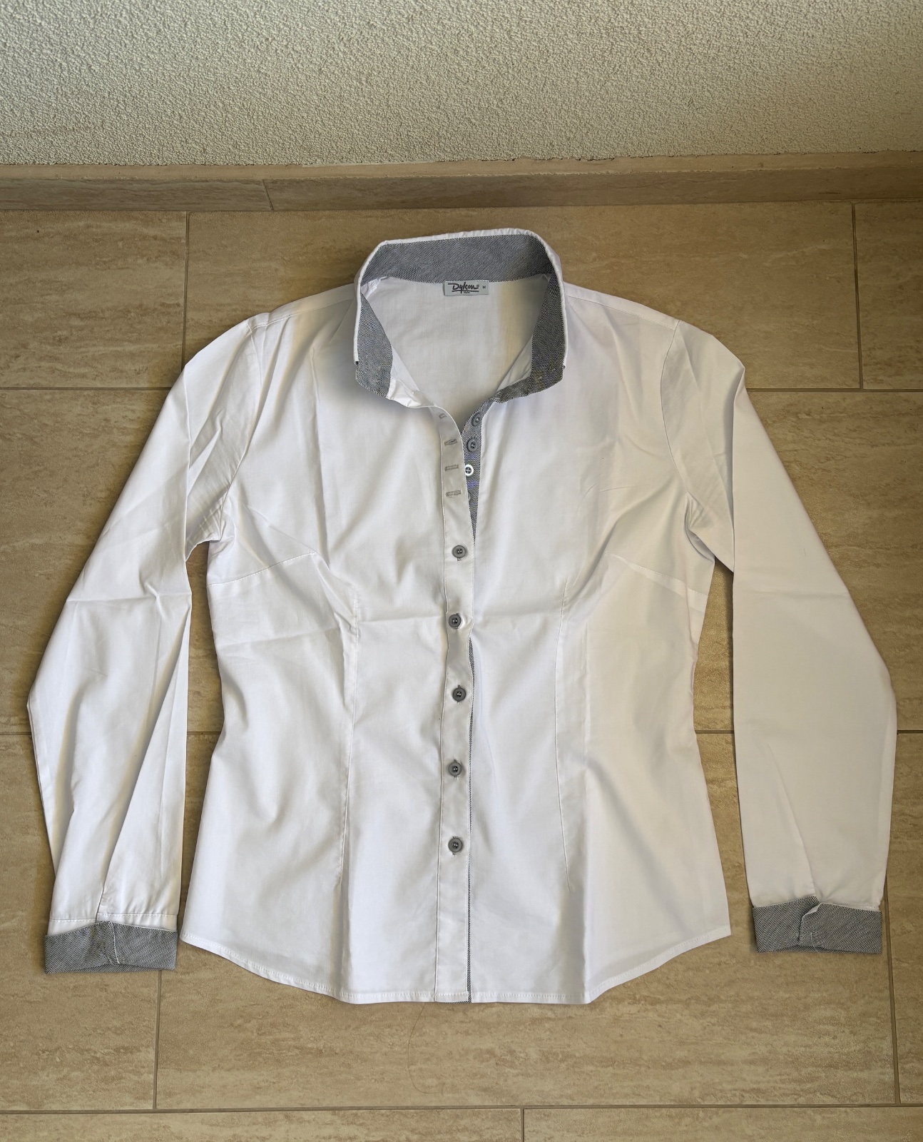 Biela blúzočka, oblečená 1x. Šírka cez prsia je 50 cm, dĺžka je cca 67 cm. Cena 12€ + poštovné ako list 1,30€ alebo doporučene 2,20€.