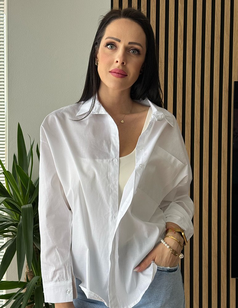 Biela košeľa Tiara je basic bavlnená košeľa, ktorá sa perfektne ladí k rôznym outfitom, či už denným alebo slávnostným.