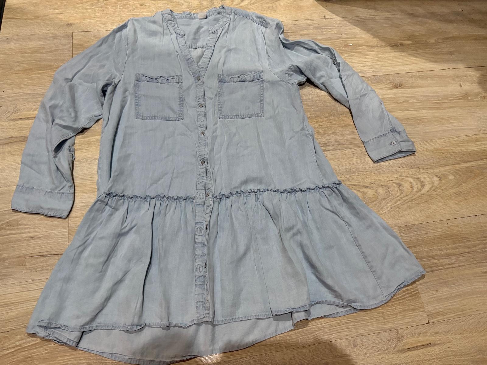 predám koselu predĺženú imitácia rifloviny cize prijemny material stitok uz odstrihnuty neviem napisat zlozenie m ale kludne do l premerajte do krku dolu89cm cez pazuchy52cm is krku po rukav68cm posta podľa tarify moj skr