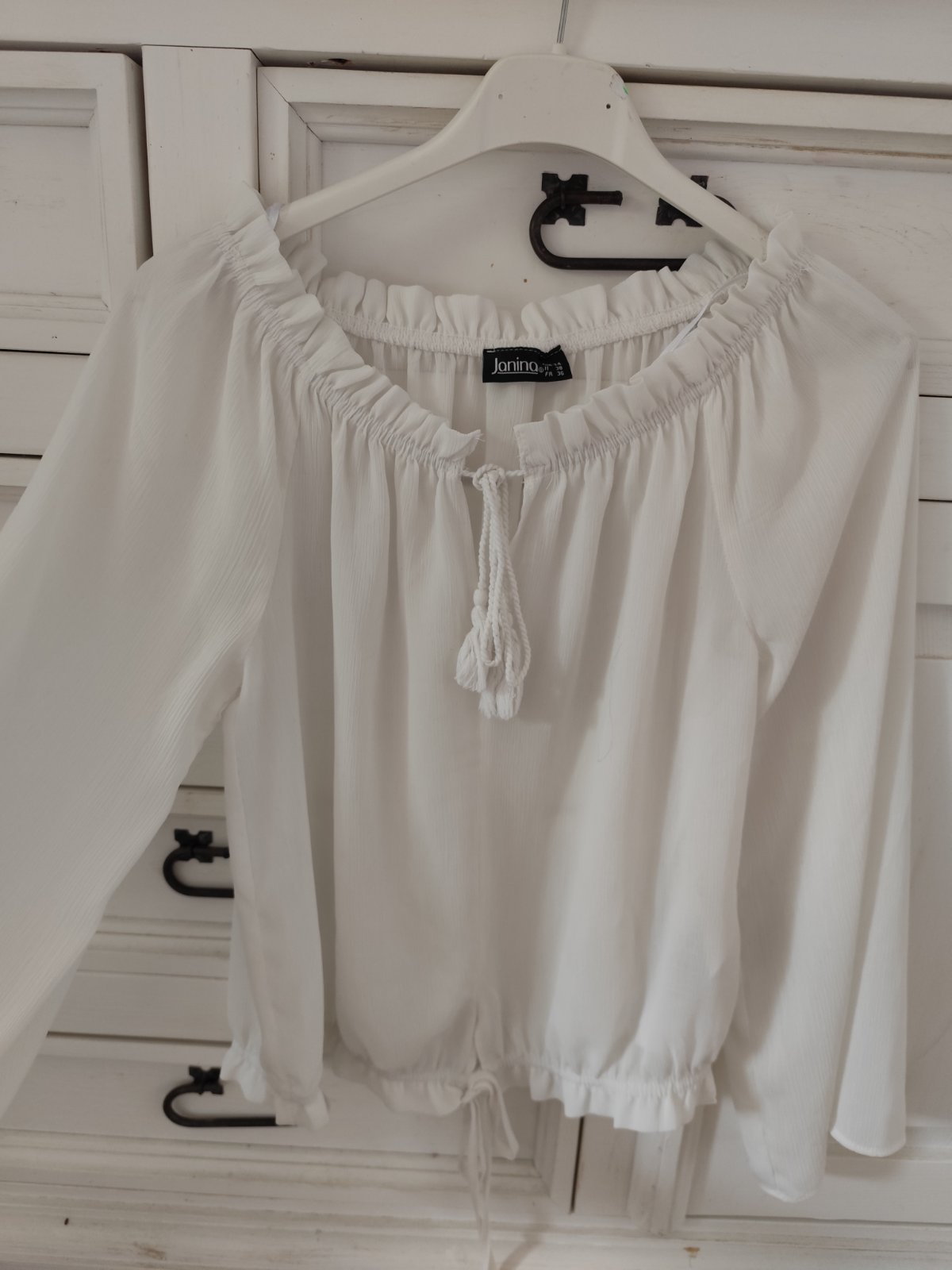 Príjemná košela pre slečnu. D: cca 65-67 v zadu do oblúčika Š: 44 cm Rukáv celý spod golierika 68cm