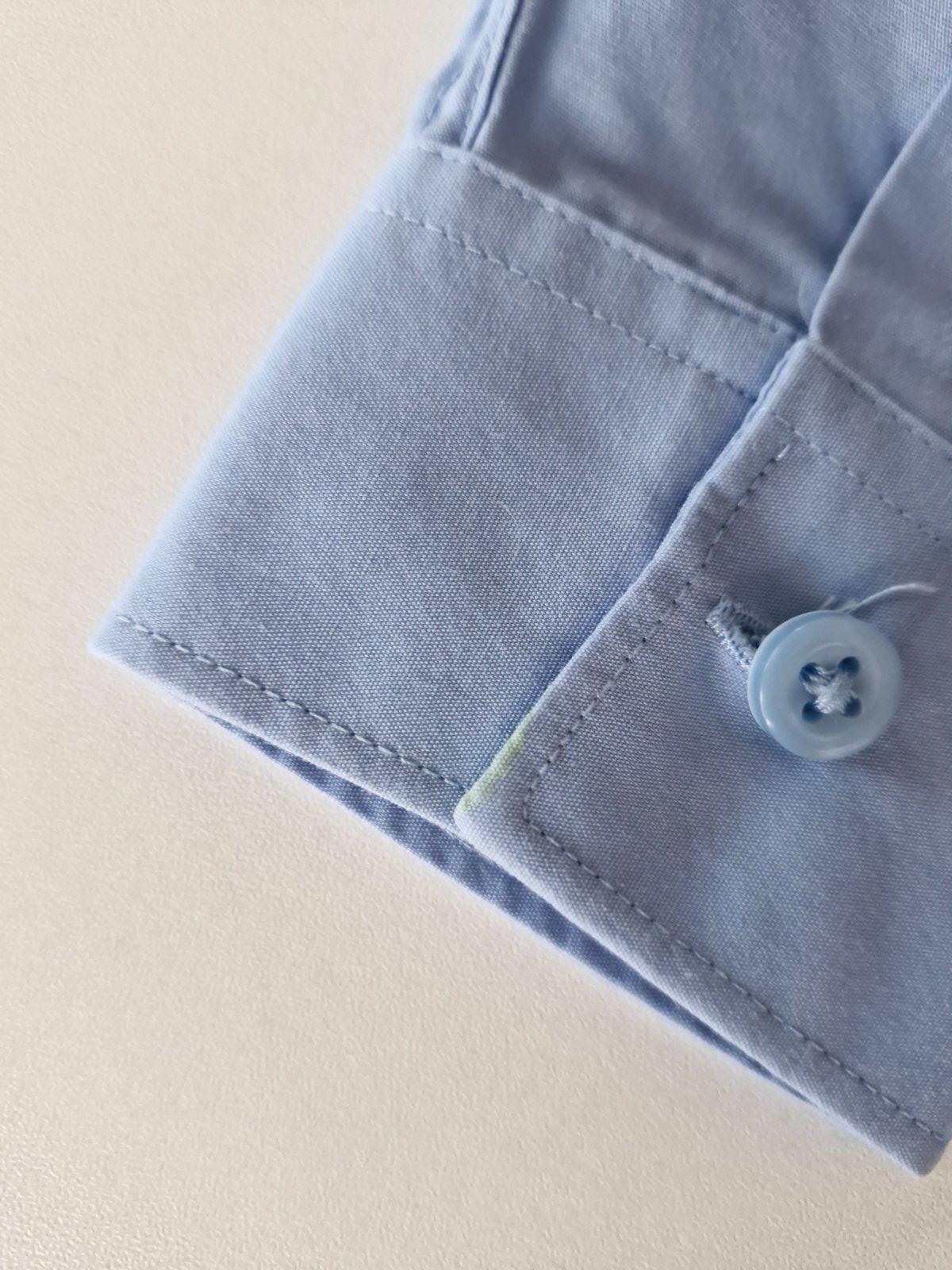 Krásna chlapčenská košeľa Marks&Spencer, veľkosť 104, modrá s vláčikom Tomášom. Nosená, vpredu malinký fliačik (viď foto), inak v dobrom stave.