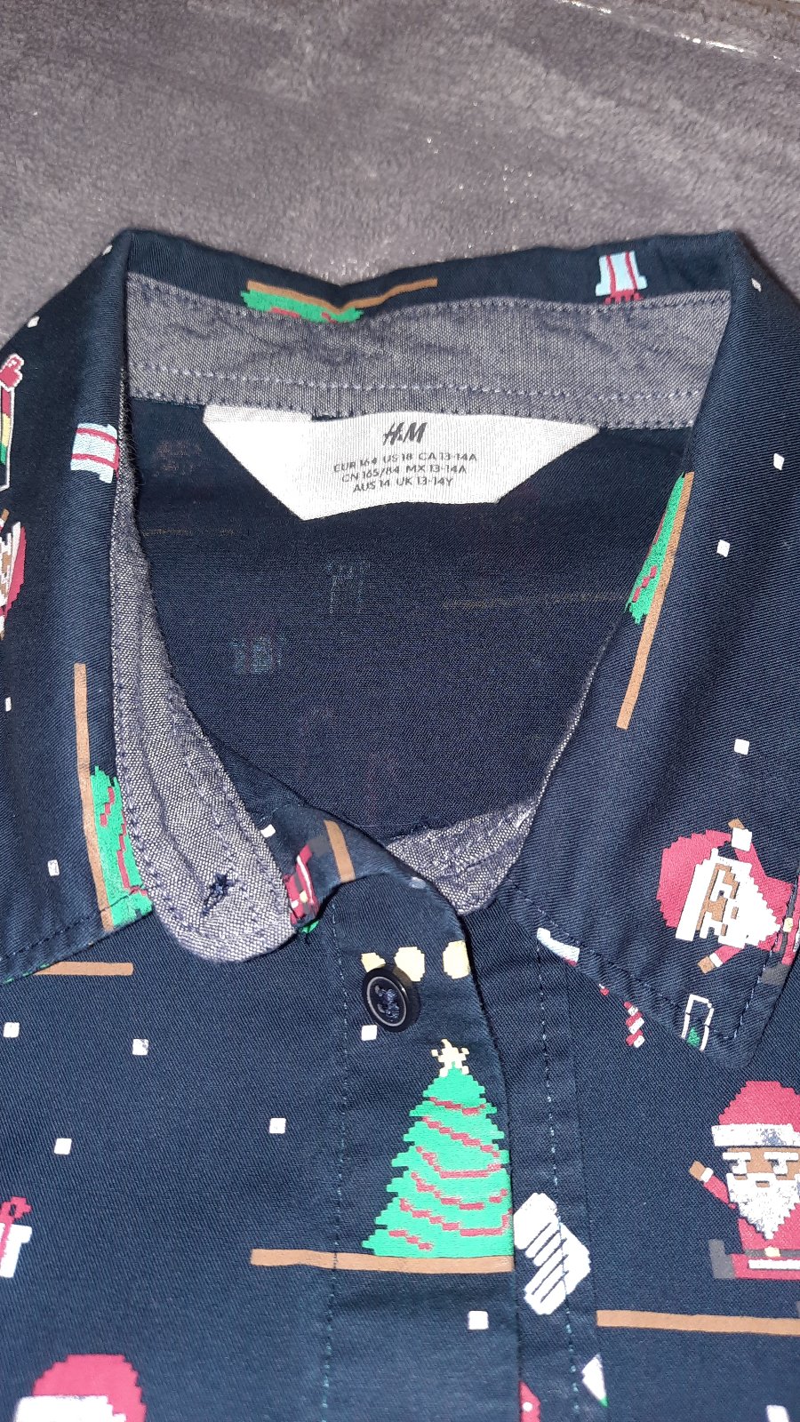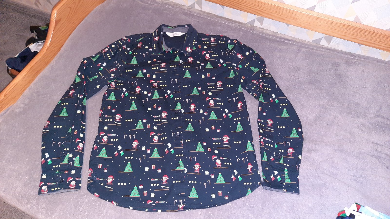 Na predaj pár krát oblečená košeľa s vianočným motívom. Značka H&M, veľkosť 164.