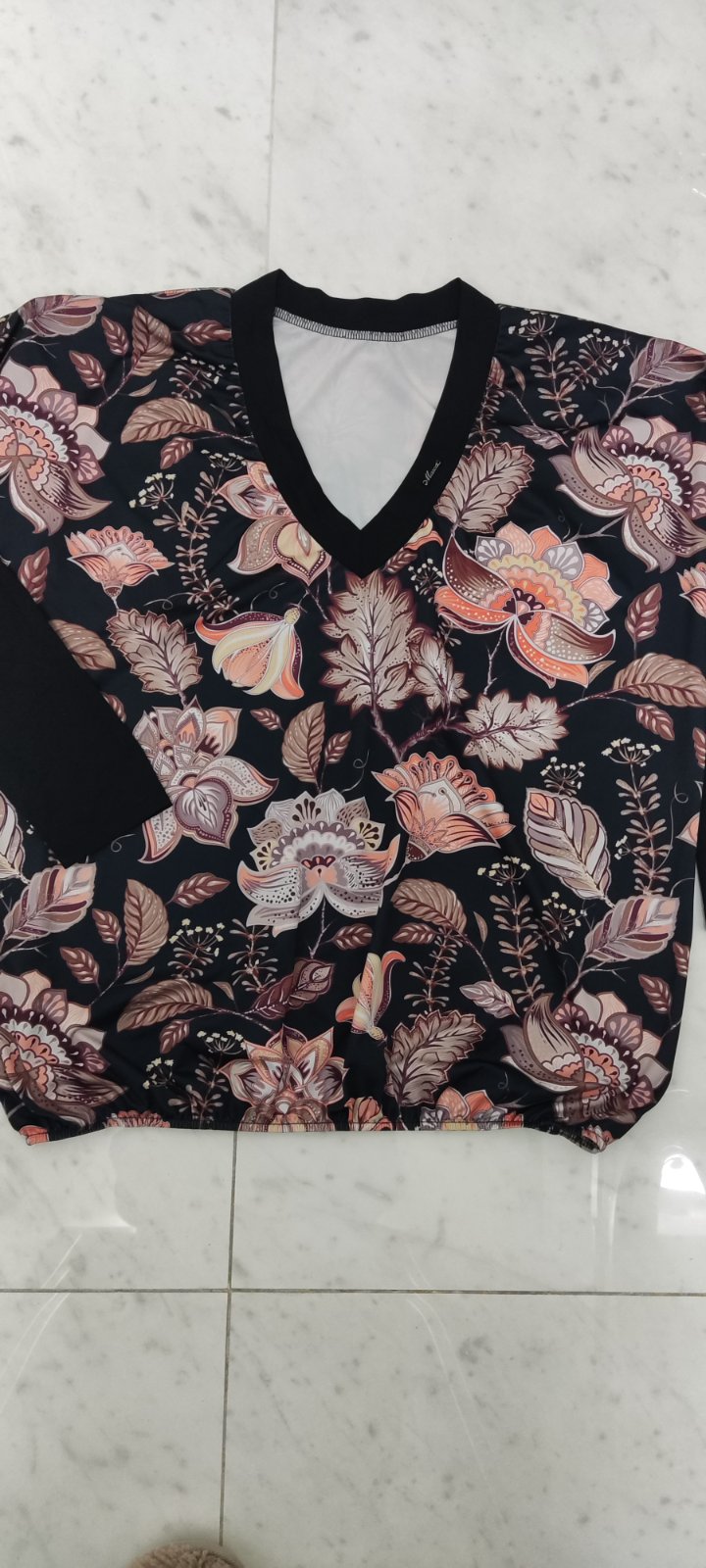 Blúzka Masca vo výbornom stave bez známok nosenia, v oblasti poprsia, voľný strih, dole gumička, kryje bruško a iné nedostatky, odporúčam aj na väčšie Uni do obvodu pŕs max 120 cm, maďarský vyrobca Masca.
