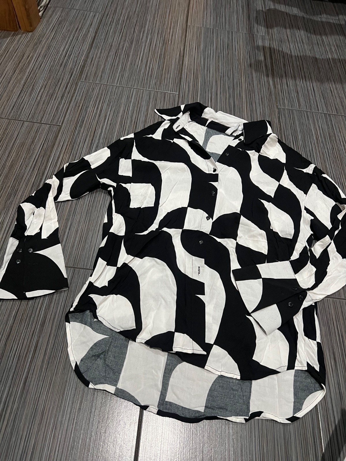 Košeľa s dlhým rukávom, veľkosť S Rozmery: Dĺžka predná časť: 57 cm Dĺžka zadná časť: 70 cm Hrudnik: 50 cm
