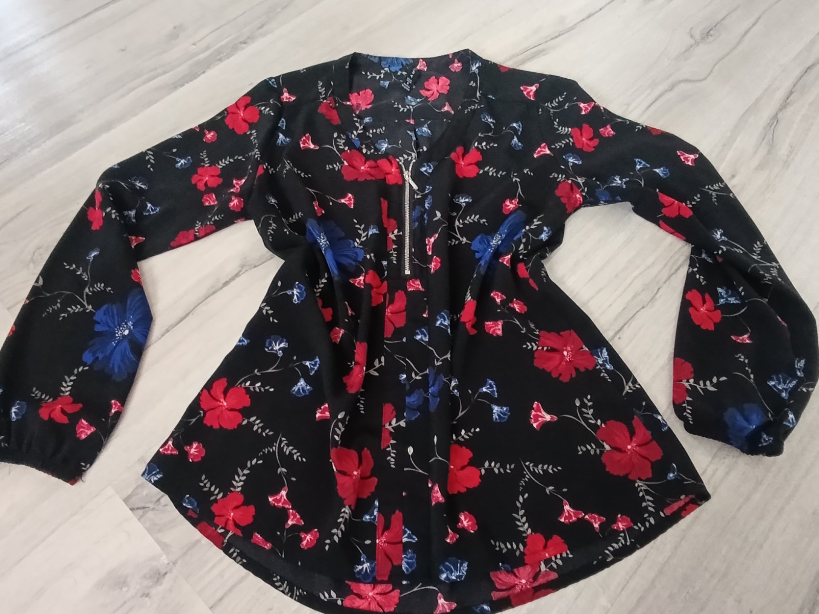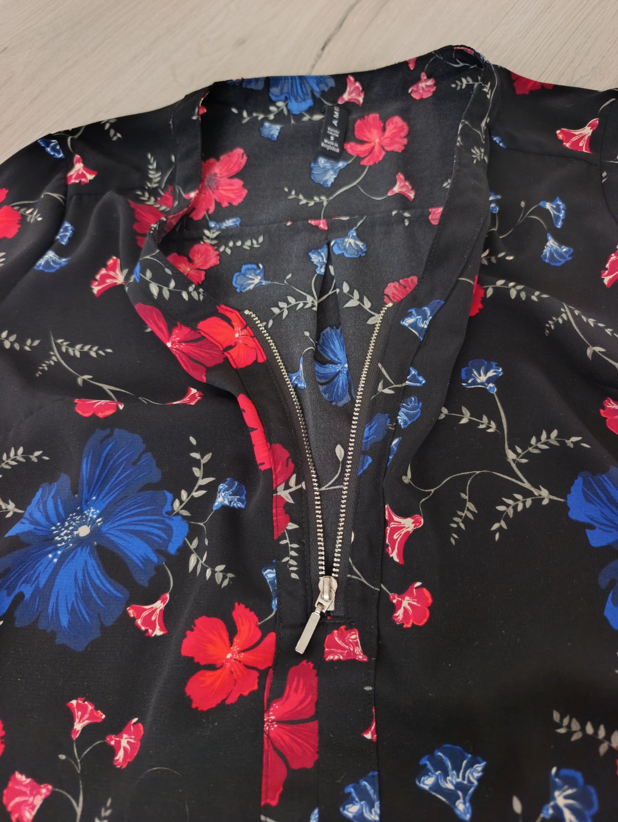 Veľmi pekná blúzka s kvetmi, vo výstrihu zips, top stav ako nová, len 2x oblečená, uvedené S, ale je to voľný strih tak v pohode sedí na M (aj menšie L). Pri výmene 7€