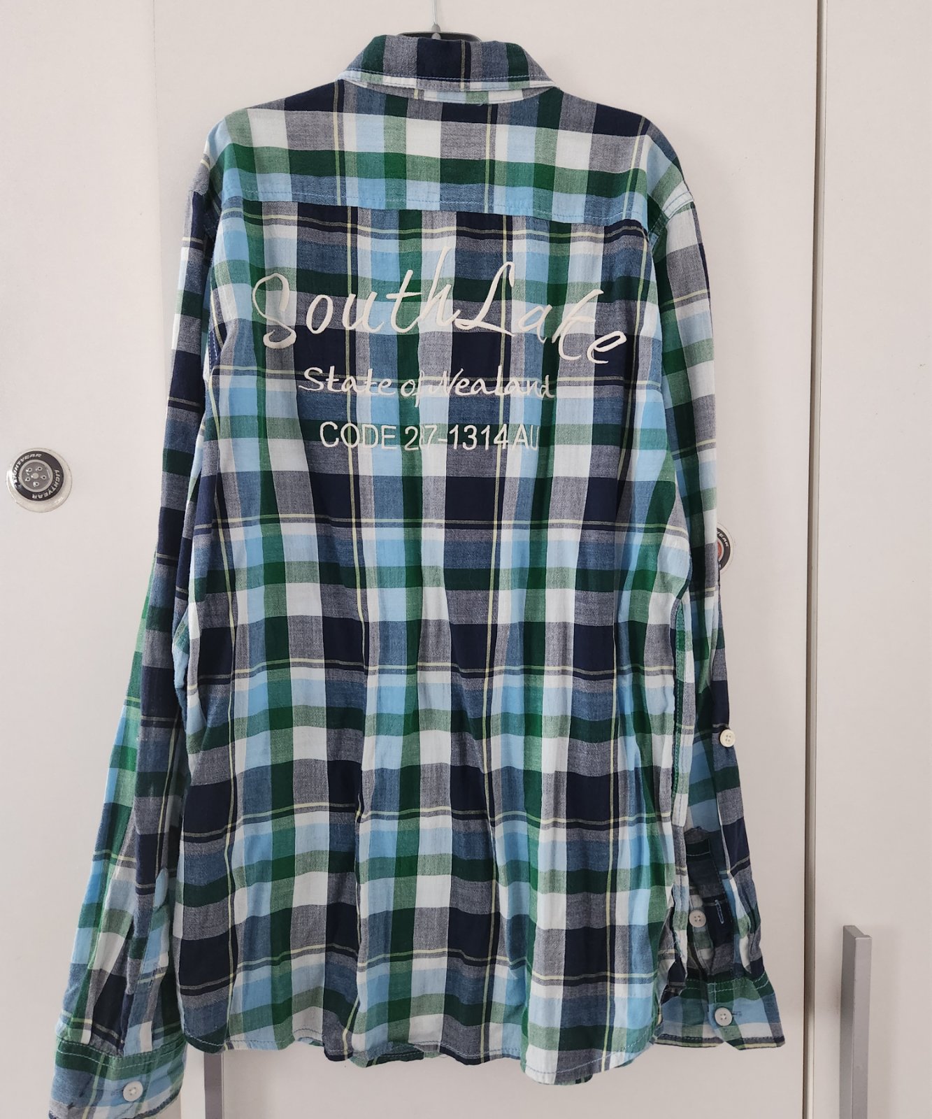Košeľa má pekný jemný vzor. Málo nosená, bez fľakov a bez poškodení. Rozmery: Rukáv od pleca: 54cm Dĺžka od pleca po spodok: 59,5cm Cez hruď: 2x41cm