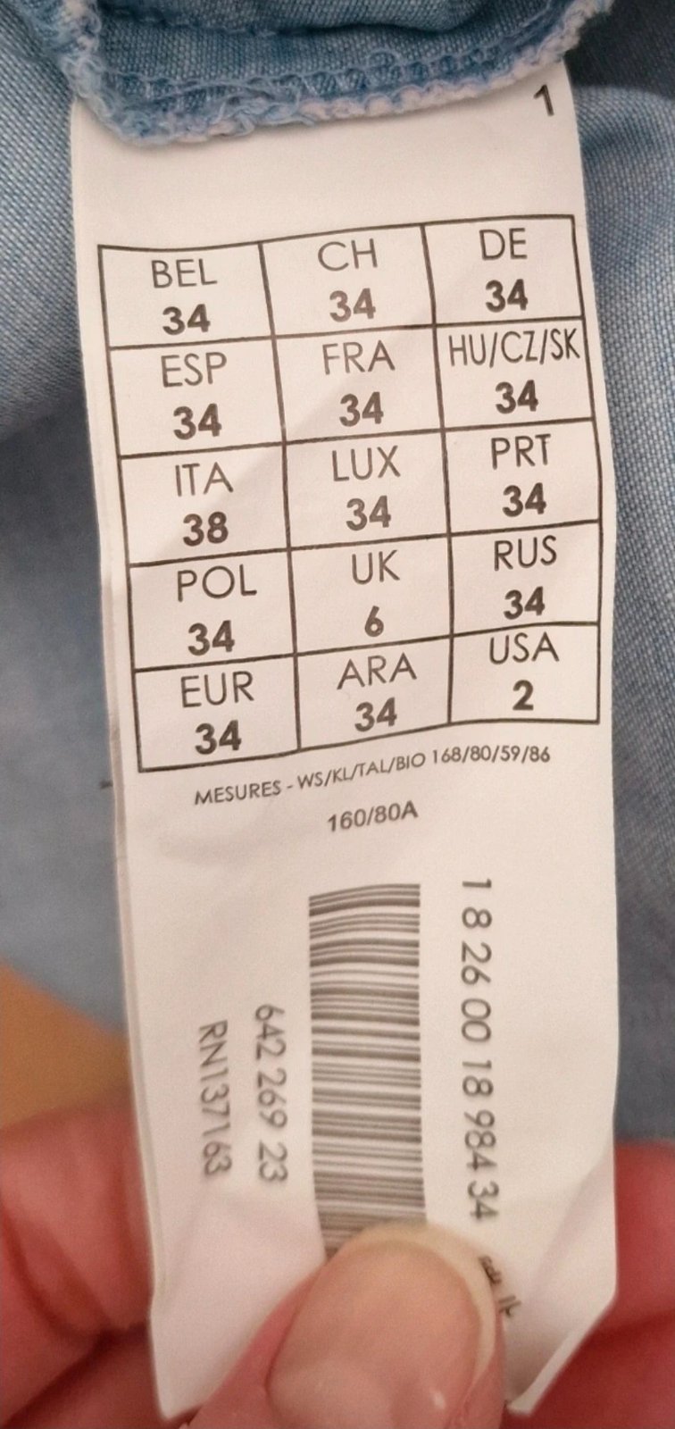 Predám rifľovú košieľku Promod, veľ. 34, pár x oblečená, super stav. Z tenkej príjemnej rifľovinky. Cena 5,99 € plus poštovné.
